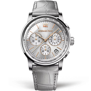 Часы Audemars Piguet из коллекции Code 11.59 Chronograph. Спортивные мужские часы Audemars Piguet Royal CODE 11.59 Chronograph Selfwinding 26393CR.OO.A009CR.01 премиального качества (Артикул магазина: AP-1229) оснащены надежным автоматическим механизмом с автоподзаводом (работает от амплитуды движения руки) калибра AP4401, в котором реализованы следующие функции: часовая, минутная и секундная стрелки, а так же хронограф, дата. Круглый корпус часов стального цвета, имеющий размер 41 мм и высоту 12.6 мм превосходно дополнит образ и украсит запястье своего обладателя. Для изготовления часов Audemars Piguet Royal CODE 11.59 Chronograph Selfwinding 26393CR.OO.A009CR.01 предлагаемых в нашем интернет-магазине, применяются нержавеющая сталь 316L высокого качества (Швейцарский стандарт), а так же сапфировое стекло высокой прочности, благодаря чему обеспечивается максимальная защита от сколов и механических повреждений. Отличительной чертой данной модели является серебристый циферблат, часовые индексы которого обеспечивают часовые метки. Завершает образ кожаный ремешок серого цвета с фирменной классической застежкой Audemars Piguet. Водонепроницаемость данной модели составляет 30М (WR30) – допускается минимальное воздействие с водой.