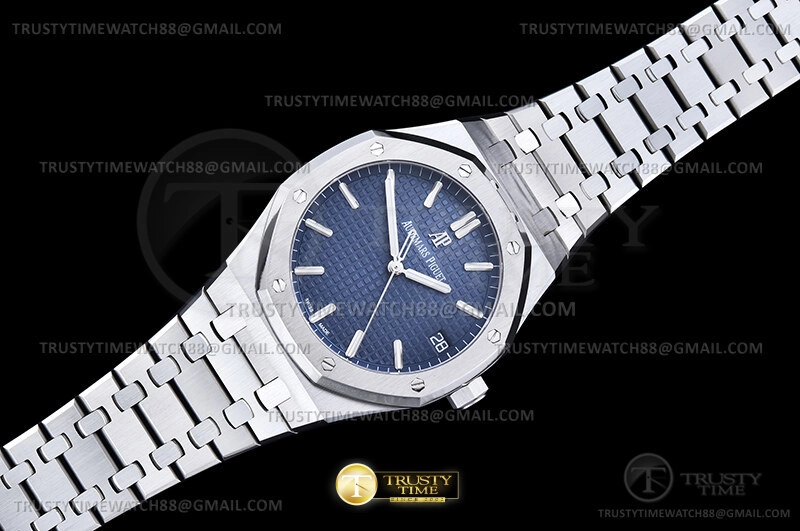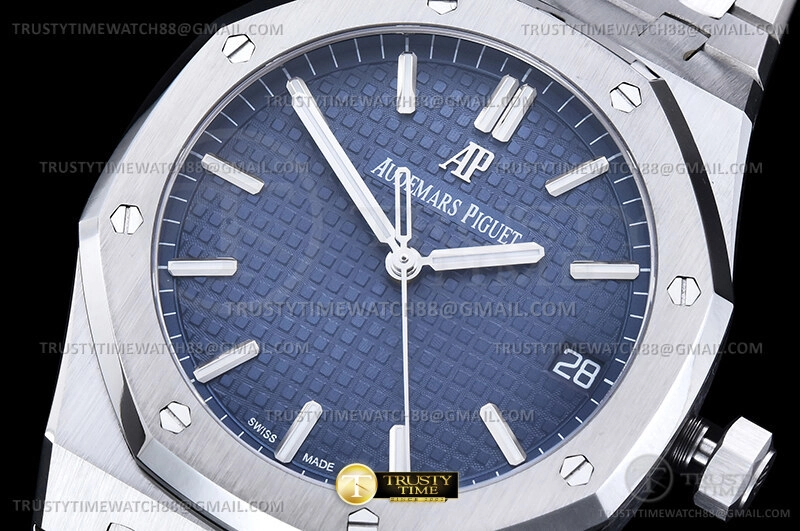 Часы Audemars Piguet из коллекции Royal Oak. Классические мужские часы Audemars Piguet Royal Oak Selfwinding II 15500ST.OO.1220ST.01 премиального качества (Артикул магазина: AP-0741) оснащены надежным автоматическим механизмом с автоподзаводом (работает от амплитуды движения руки) калибра AP4302, в котором реализованы следующие функции: часовая, минутная и секундная стрелки, а так же дата. Восьмиугольный корпус часов стального цвета, имеющий размер 41 мм и высоту 11 мм превосходно дополнит образ и украсит запястье своего обладателя. Для изготовления часов Audemars Piguet Royal Oak Selfwinding II 15500ST.OO.1220ST.01 предлагаемых в нашем интернет-магазине, применяются нержавеющая сталь 316F высокого качества (Швейцарский стандарт), а так же сапфировое стекло высокой прочности, благодаря чему обеспечивается максимальная защита от сколов и механических повреждений. Отличительной чертой данной модели является синий циферблат, часовые индексы которого обеспечивают часовые метки. Завершает образ браслет из нержавеющей стали стального цвета с фирменной раскладывающейся застежкой Audemars Piguet. Водонепроницаемость данной модели составляет 30М (WR30) – допускается минимальное воздействие с водой.