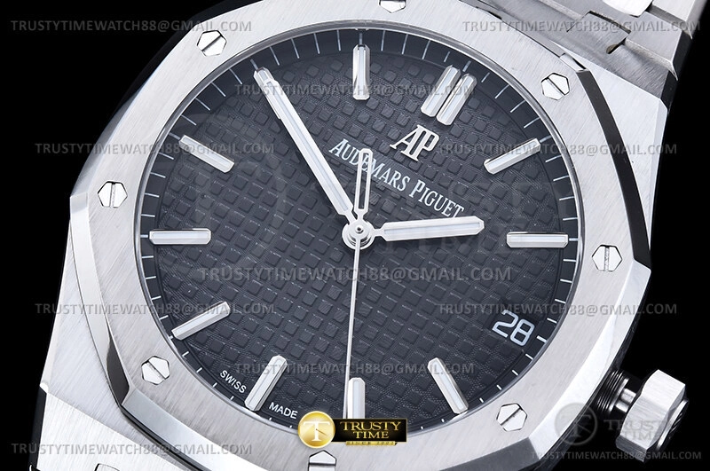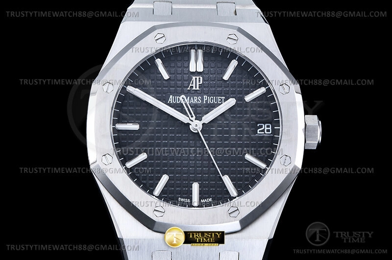 Часы Audemars Piguet из коллекции Royal Oak. Классические мужские часы Audemars Piguet Royal Oak Selfwinding II 15500ST.OO.1220ST.03 премиального качества (Артикул магазина: AP-0683) оснащены надежным автоматическим механизмом с автоподзаводом (работает от амплитуды движения руки) калибра AP4302, в котором реализованы следующие функции: часовая, минутная и секундная стрелки, а так же дата. Восьмиугольный корпус часов стального цвета, имеющий размер 41 мм и высоту 11 мм превосходно дополнит образ и украсит запястье своего обладателя. Для изготовления часов Audemars Piguet Royal Oak Selfwinding II 15500ST.OO.1220ST.03 предлагаемых в нашем интернет-магазине, применяются нержавеющая сталь 316F высокого качества (Швейцарский стандарт), а так же сапфировое стекло высокой прочности, благодаря чему обеспечивается максимальная защита от сколов и механических повреждений. Отличительной чертой данной модели является черный циферблат, часовые индексы которого обеспечивают часовые метки. Завершает образ браслет из нержавеющей стали стального цвета с фирменной раскладывающейся застежкой Audemars Piguet. Водонепроницаемость данной модели составляет 30М (WR30) – допускается минимальное воздействие с водой.