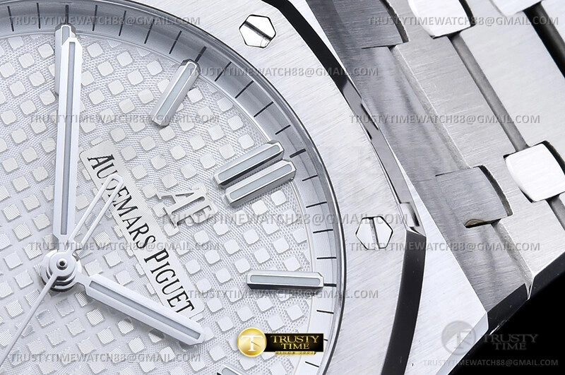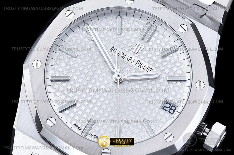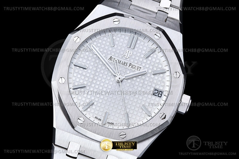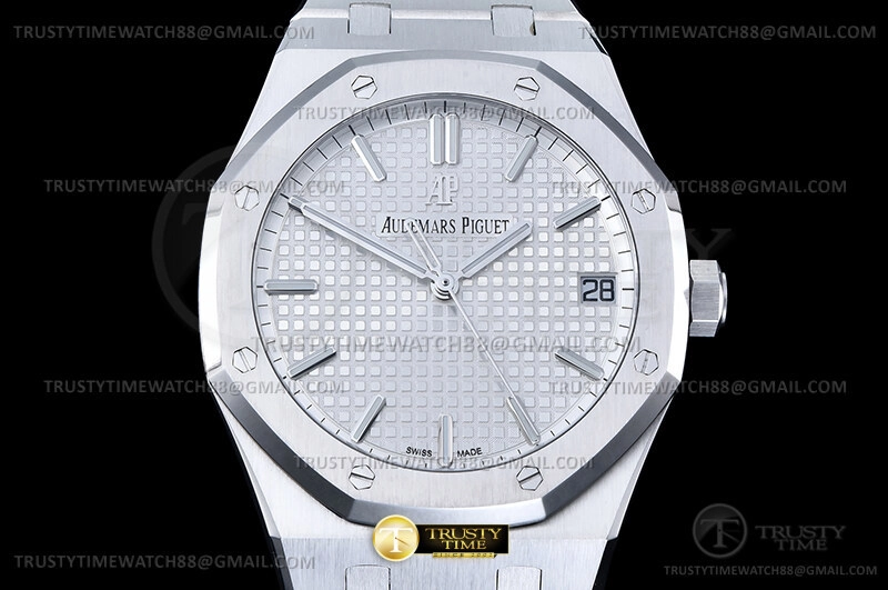 Часы Audemars Piguet из коллекции Royal Oak. Классические мужские часы Audemars Piguet Royal Oak Selfwinding 15500ST.OO.1220ST.04 премиального качества (Артикул магазина: AP-0656) оснащены надежным автоматическим механизмом с автоподзаводом (работает от амплитуды движения руки) калибра AP4302, в котором реализованы следующие функции: часовая, минутная и секундная стрелки, а так же дата. Восьмиугольный корпус часов стального цвета, имеющий размер 41 мм и высоту 11 мм превосходно дополнит образ и украсит запястье своего обладателя. Для изготовления часов Audemars Piguet Royal Oak Selfwinding 15500ST.OO.1220ST.04 предлагаемых в нашем интернет-магазине, применяются нержавеющая сталь 316F высокого качества (Швейцарский стандарт), а так же сапфировое стекло высокой прочности, благодаря чему обеспечивается максимальная защита от сколов и механических повреждений. Отличительной чертой данной модели является серебристый циферблат, часовые индексы которого обеспечивают часовые метки. Завершает образ браслет из нержавеющей стали стального цвета с фирменной раскладывающейся застежкой Audemars Piguet. Водонепроницаемость данной модели составляет 30М (WR30) – допускается минимальное воздействие с водой.