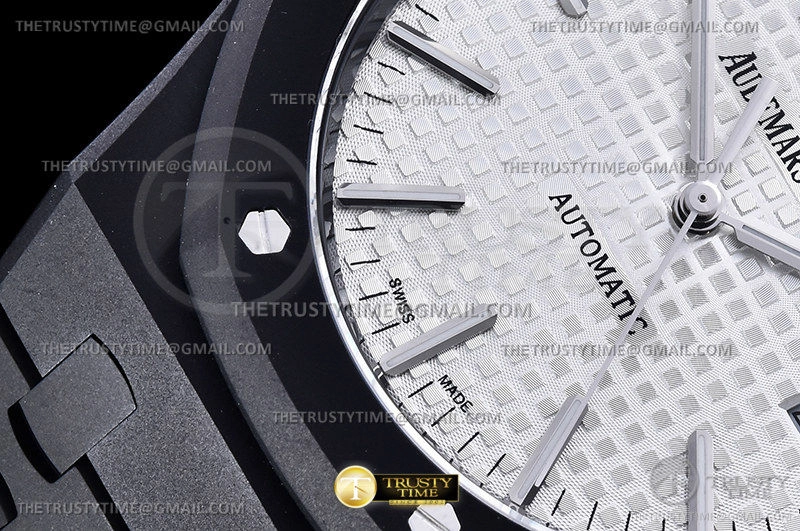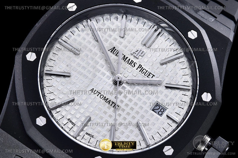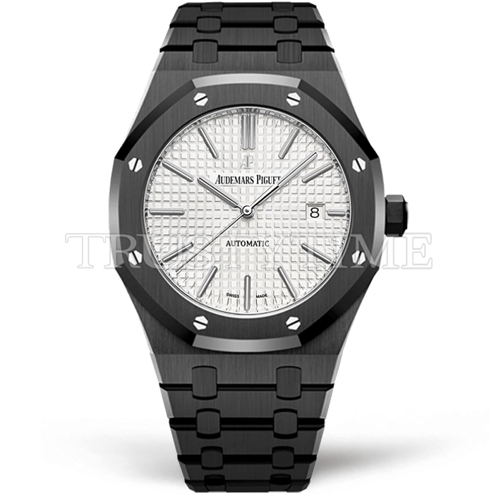Часы Audemars Piguet из коллекции Royal Oak. Классические мужские часы Audemars Piguet Royal Oak Black Venom Custom 15400 премиального качества (Артикул магазина: AP-0981) оснащены надежным автоматическим механизмом с автоподзаводом (работает от амплитуды движения руки) калибра AP3120, в котором реализованы следующие функции: часовая, минутная и секундная стрелки, а так же дата. Восьмиугольный корпус часов черного цвета, имеющий размер 41 мм и высоту 10 мм превосходно дополнит образ и украсит запястье своего обладателя. Для изготовления часов Audemars Piguet Royal Oak Black Venom Custom 15400 предлагаемых в нашем интернет-магазине, применяются нержавеющая сталь 316F высокого качества (Швейцарский стандарт), а так же сапфировое стекло высокой прочности, благодаря чему обеспечивается максимальная защита от сколов и механических повреждений. Отличительной чертой данной модели является белый циферблат, часовые индексы которого обеспечивают часовые метки. Завершает образ браслет из нержавеющей стали черного цвета с фирменной раскладывающейся застежкой Audemars Piguet. Водонепроницаемость данной модели составляет 30М (WR30) – допускается минимальное воздействие с водой.