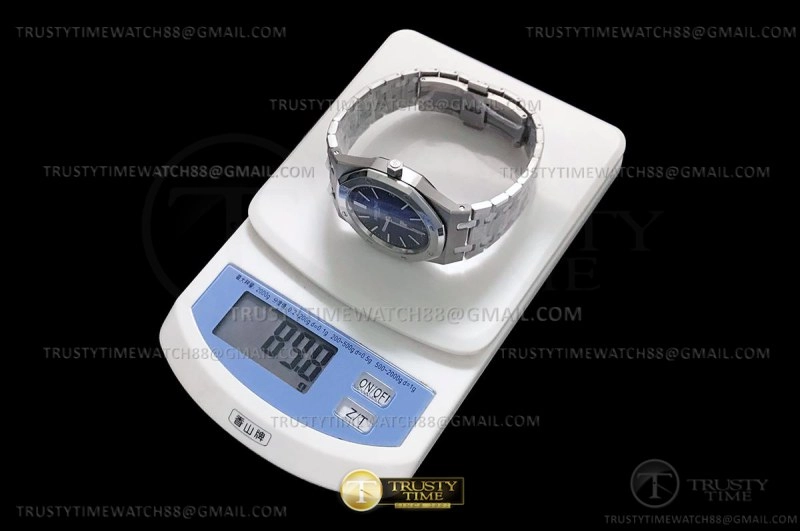 Часы Audemars Piguet из коллекции Royal Oak Jumbo. Классические мужские часы Audemars Piguet Royal Oak Jumbo Extra-Thin 15202IP.OO.1240IP.01 премиального качества (Артикул магазина: AP-1026) оснащены надежным автоматическим механизмом с автоподзаводом (работает от амплитуды движения руки) калибра AP2121, в котором реализованы следующие функции: часова и минутка стрелки, а так же дата. Восьмиугольный корпус часов стального цвета, имеющий размер 39 мм и высоту 9 мм превосходно дополнит образ и украсит запястье своего обладателя. Для изготовления часов Audemars Piguet Royal Oak Jumbo Extra-Thin 15202IP.OO.1240IP.01 предлагаемых в нашем интернет-магазине, применяются титан высокого качества (Швейцарский стандарт), а так же сапфировое стекло высокой прочности, благодаря чему обеспечивается максимальная защита от сколов и механических повреждений. Отличительной чертой данной модели является синий циферблат, часовые индексы которого обеспечивают часовые метки. Завершает образ браслет из титанового сплава стального цвета с фирменной раскладывающейся застежкой Audemars Piguet. Водонепроницаемость данной модели составляет 30М (WR30) – допускается минимальное воздействие с водой.