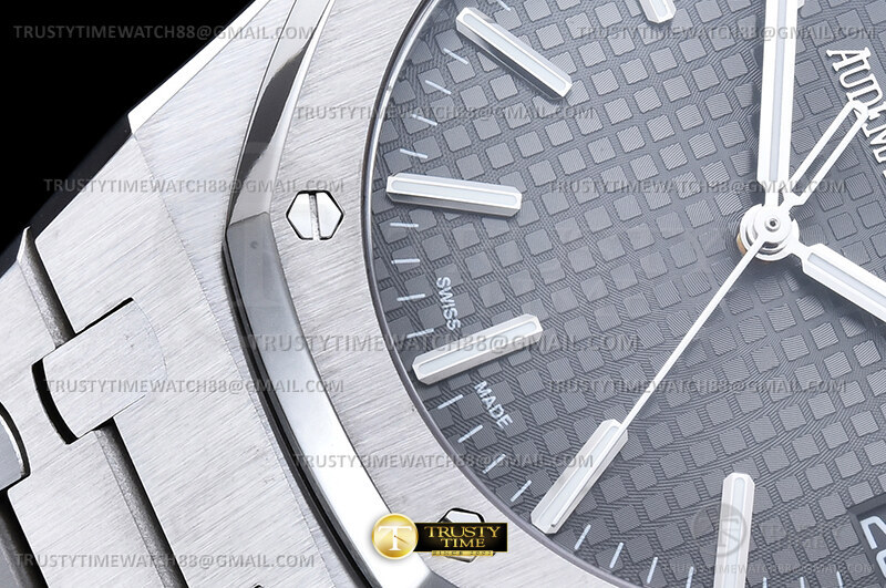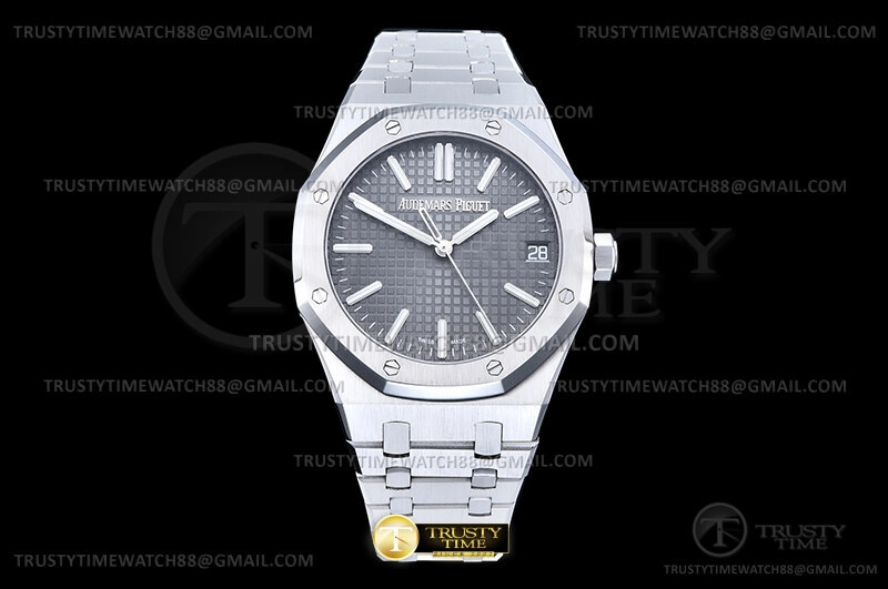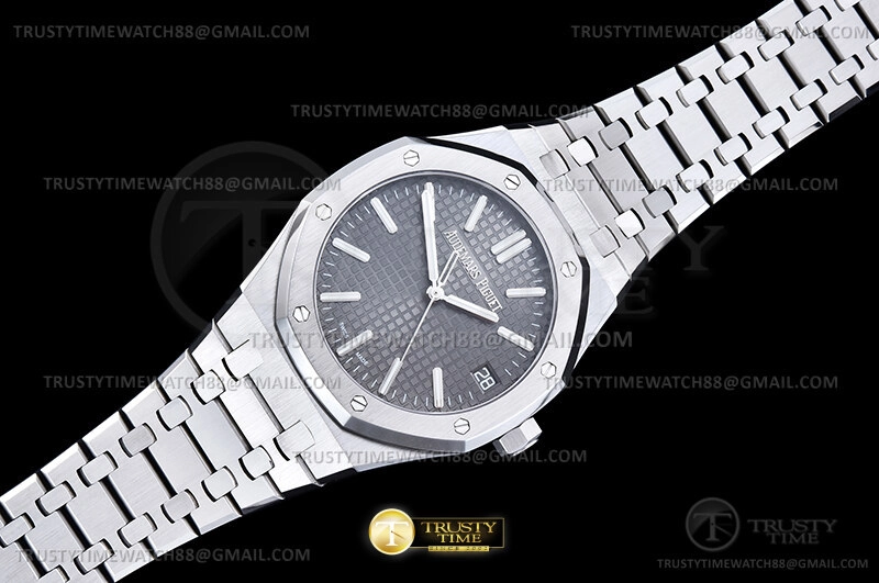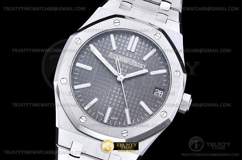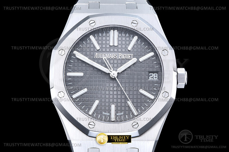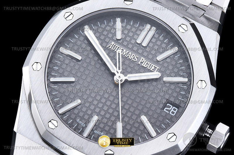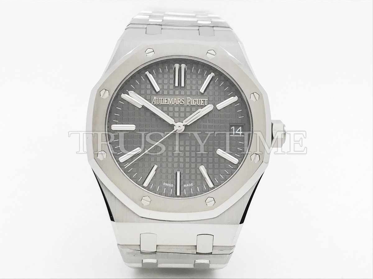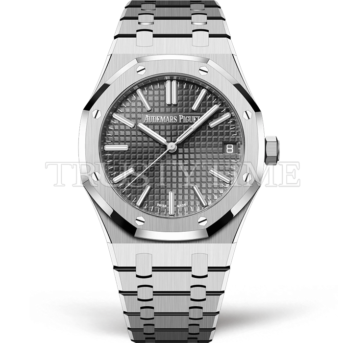 Часы Audemars Piguet из коллекции Royal Oak. Классические мужские часы Audemars Piguet Royal Oak Selfwinding 15510ST.OO.1320ST.10 премиального качества (Артикул магазина: AP-1217) оснащены надежным автоматическим механизмом с автоподзаводом (работает от амплитуды движения руки) калибра AP4302, в котором реализованы следующие функции: часовая, минутная и секундная стрелки, а так же дата. Восьмиугольный корпус часов стального цвета, имеющий размер 41 мм и высоту 10.5 мм превосходно дополнит образ и украсит запястье своего обладателя. Для изготовления часов Audemars Piguet Royal Oak Selfwinding 15510ST.OO.1320ST.10 предлагаемых в нашем интернет-магазине, применяются нержавеющая сталь 316F высокого качества (Швейцарский стандарт), а так же сапфировое стекло высокой прочности, благодаря чему обеспечивается максимальная защита от сколов и механических повреждений. Отличительной чертой данной модели является серый циферблат, часовые индексы которого обеспечивают часовые метки. Завершает образ браслет из нержавеющей стали стального цвета с фирменной раскладывающейся застежкой Audemars Piguet. Водонепроницаемость данной модели составляет 30М (WR30) – допускается минимальное воздействие с водой.
