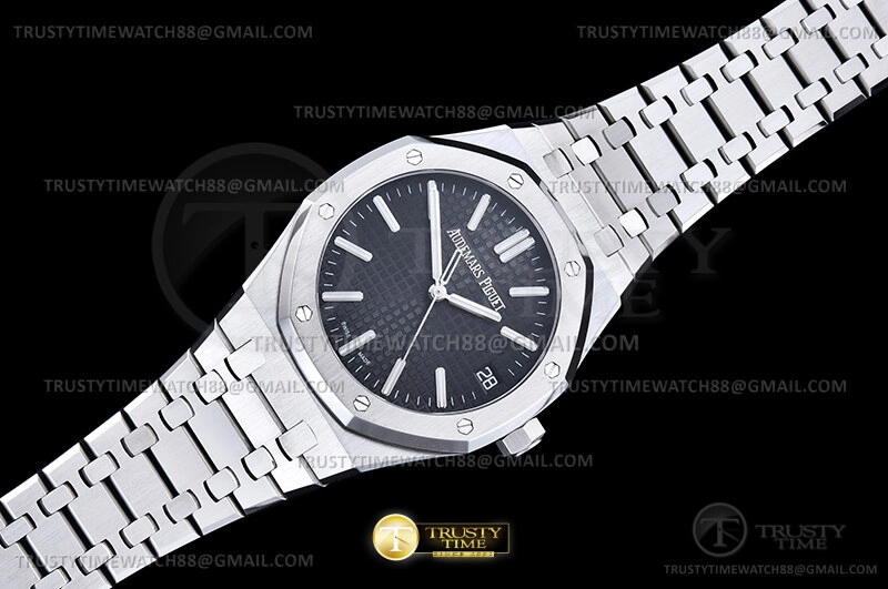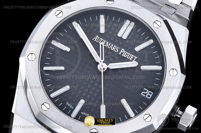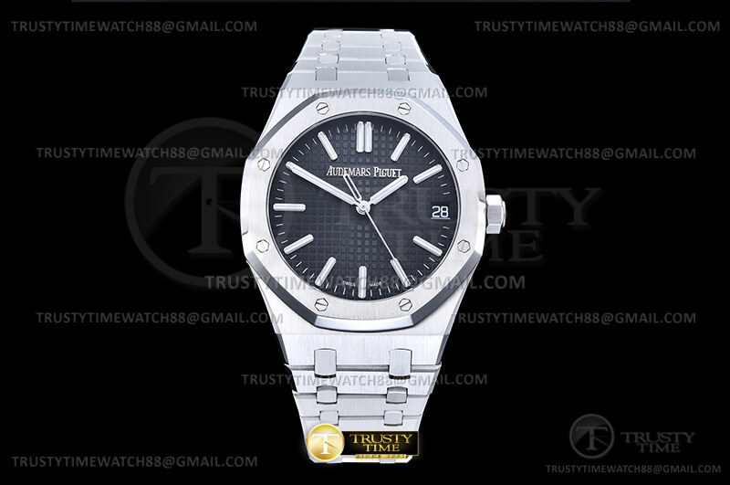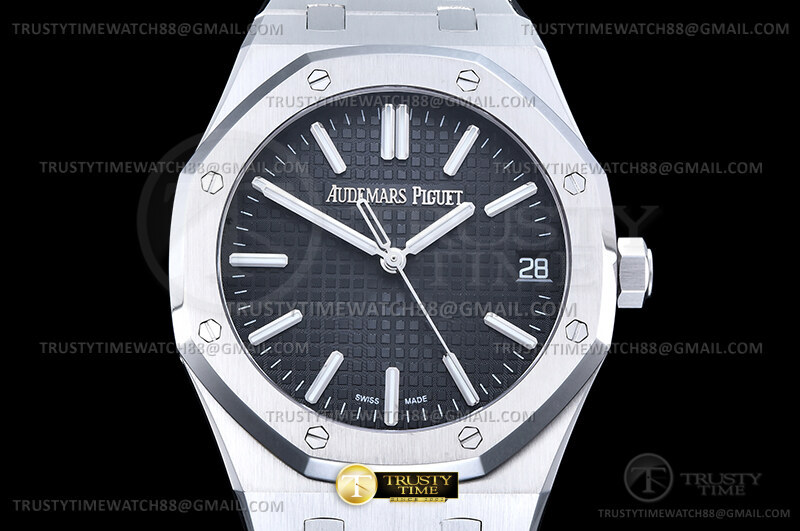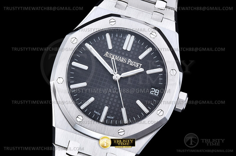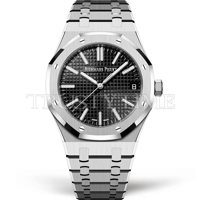 Часы Audemars Piguet из коллекции Royal Oak. Классические мужские часы Audemars Piguet Royal Oak Selfwinding 15510ST.OO.1320ST.07 премиального качества (Артикул магазина: AP-1221) оснащены надежным автоматическим механизмом с автоподзаводом (работает от амплитуды движения руки) калибра AP4302, в котором реализованы следующие функции: часовая, минутная и секундная стрелки, а так же дата. Восьмиугольный корпус часов стального цвета, имеющий размер 41 мм и высоту 10.5 мм превосходно дополнит образ и украсит запястье своего обладателя. Для изготовления часов Audemars Piguet Royal Oak Selfwinding 15510ST.OO.1320ST.07 предлагаемых в нашем интернет-магазине, применяются нержавеющая сталь 316F высокого качества (Швейцарский стандарт), а так же сапфировое стекло высокой прочности, благодаря чему обеспечивается максимальная защита от сколов и механических повреждений. Отличительной чертой данной модели является черный циферблат, часовые индексы которого обеспечивают часовые метки. Завершает образ браслет из нержавеющей стали стального цвета с фирменной раскладывающейся застежкой Audemars Piguet. Водонепроницаемость данной модели составляет 30М (WR30) – допускается минимальное воздействие с водой.