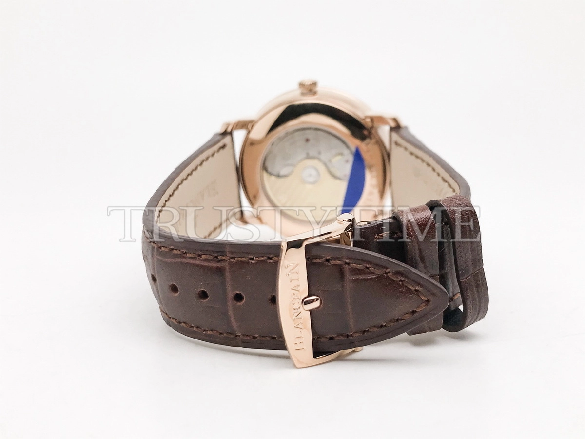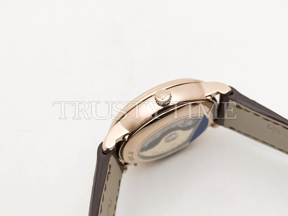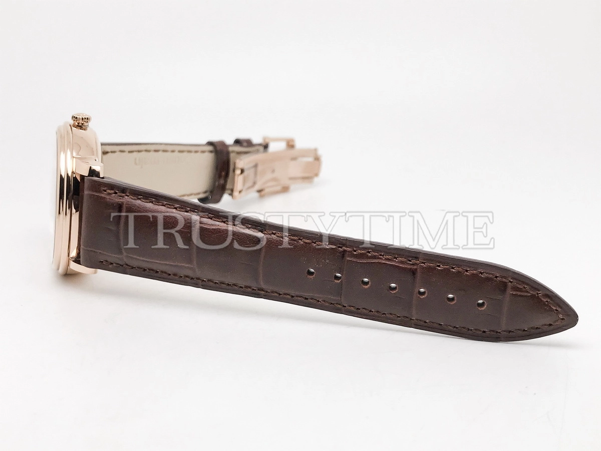 Часы Blancpain из коллекции Villeret Complications. Классические мужские часы Blancpain Villeret Moonphase 6654-3642-55B премиального качества (Артикул магазина: BP-0359) оснащены надежным автоматическим механизмом с автоподзаводом (работает от амплитуды движения руки) калибра BP6654, в котором реализованы следующие функции: часовая, минутная и секундная стрелки, а так же дата, фаза луны, день недели, месяц. Круглый корпус часов розового цвета, имеющий размер 40 мм и высоту 12 мм превосходно дополнит образ и украсит запястье своего обладателя. Для изготовления часов Blancpain Villeret Moonphase 6654-3642-55B предлагаемых в нашем интернет-магазине, применяются нержавеющая сталь 316L высокого качества (Швейцарский стандарт), а так же сапфировое стекло высокой прочности, благодаря чему обеспечивается максимальная защита от сколов и механических повреждений. Отличительной чертой данной модели является белый циферблат, часовые индексы которого обеспечивают римские цифры. Завершает образ кожаный ремешок коричневого цвета с фирменной раскладывающейся застежкой Blancpain. Водонепроницаемость данной модели составляет 30М (WR30) – допускается минимальное воздействие с водой.