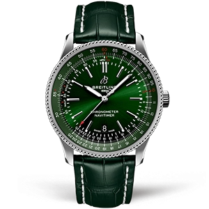 Часы Breitling из коллекции Navitimer. Классические мужские часы Breitling Navitimer Automatic 41 A17326361L1P2 премиального качества (Артикул магазина: BT-0903) оснащены надежным автоматическим механизмом с автоподзаводом (работает от амплитуды движения руки) калибра ETA2824-2, в котором реализованы следующие функции: часовая, минутная и секундная стрелки, а так же дата. Круглый корпус часов стального цвета, имеющий размер 41 мм и высоту 11 мм превосходно дополнит образ и украсит запястье своего обладателя. Для изготовления часов Breitling Navitimer Automatic 41 A17326361L1P2 предлагаемых в нашем интернет-магазине, применяются нержавеющая сталь 316L высокого качества (Швейцарский стандарт), а так же сапфировое стекло высокой прочности, благодаря чему обеспечивается максимальная защита от сколов и механических повреждений. Отличительной чертой данной модели является зеленый циферблат, часовые индексы которого обеспечивают часовые метки. Завершает образ кожаный ремешок зеленого цвета с фирменной раскладывающейся застежкой Breitling. Водонепроницаемость данной модели составляет 30М (WR30) – допускается минимальное воздействие с водой.
