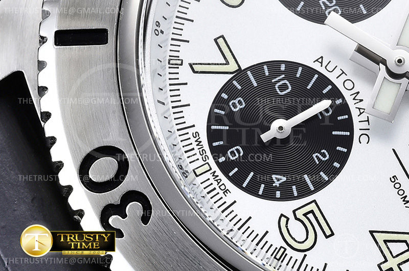Часы Breitling из коллекции Superocean Chronograph. Спортивные мужские часы Breitling Superocean Chronograph Steelfish 44 A13341C3/G782/153S премиального качества (Артикул магазина: BT-0489) оснащены надежным автоматическим механизмом с автоподзаводом (работает от амплитуды движения руки) калибра Valjoux-7750, в котором реализованы следующие функции: часовая, минутная и секундная стрелки, а так же дата, день недели, хронограф. Круглый корпус часов стального цвета, имеющий размер 44 мм и высоту 18 мм превосходно дополнит образ и украсит запястье своего обладателя. Для изготовления часов Breitling Superocean Chronograph Steelfish 44 A13341C3/G782/153S предлагаемых в нашем интернет-магазине, применяются нержавеющая сталь 316L высокого качества (Швейцарский стандарт), а так же сапфировое стекло высокой прочности, благодаря чему обеспечивается максимальная защита от сколов и механических повреждений. Отличительной чертой данной модели является белый циферблат, часовые индексы которого обеспечивают арабские цифры. Завершает образ каучуковый ремешок черного цвета с фирменной раскладывающейся застежкой Breitling. Водонепроницаемость данной модели составляет 30М (WR30) – допускается минимальное воздействие с водой.