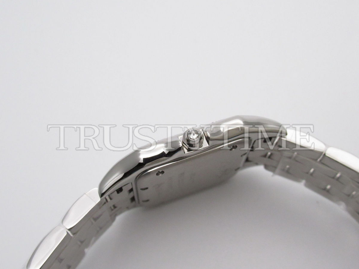 Часы Cartier из коллекции Panthere Secrete De Ladies. Классические женские часы Cartier Panthere Secrete De Ladies 27 W4PN0008 премиального качества (Артикул магазина: CR-0636) оснащены надежным кварцевым механизмом (работает от батареи) калибра Swiss Quartz ETA, в котором реализованы следующие функции: часова и минутка стрелки, а так же максимально простой функционал без усложнений. Квадратный корпус часов стального цвета, имеющий размер 27 мм х 37 мм и высоту 6 мм превосходно дополнит образ и украсит запястье своего обладателя. Для изготовления часов Cartier Panthere Secrete De Ladies 27 W4PN0008 предлагаемых в нашем интернет-магазине, применяются нержавеющая сталь 316L высокого качества (Швейцарский стандарт), а так же сапфировое стекло высокой прочности, благодаря чему обеспечивается максимальная защита от сколов и механических повреждений. Отличительной чертой данной модели является белый циферблат, часовые индексы которого обеспечивают римские цифры. Завершает образ браслет из нержавеющей стали стального цвета с фирменной раскладывающейся застежкой Cartier. Водонепроницаемость данной модели составляет 30М (WR30) – допускается минимальное воздействие с водой.