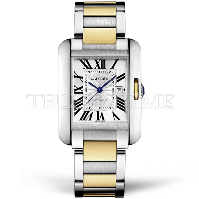 Часы Cartier из коллекции Tank. Классические мужские часы Cartier Tank Anglaise 30 W5310047 премиального качества (Артикул магазина: CR-0880) оснащены надежным автоматическим механизмом с автоподзаводом (работает от амплитуды движения руки) калибра MY9015, в котором реализованы следующие функции: часовая, минутная и секундная стрелки, а так же дата. Прямоугольный корпус часов комбинированного сталь с желтого золота цвета, имеющий размер 30 мм х 39 мм и высоту 9 мм превосходно дополнит образ и украсит запястье своего обладателя. Для изготовления часов Cartier Tank Anglaise 30 W5310047 предлагаемых в нашем интернет-магазине, применяются нержавеющая сталь 316L высокого качества (Швейцарский стандарт), а так же сапфировое стекло высокой прочности, благодаря чему обеспечивается максимальная защита от сколов и механических повреждений. Отличительной чертой данной модели является белый циферблат, часовые индексы которого обеспечивают римские цифры. Завершает образ браслет из нержавеющей стали комбинированного сталь с желтым золотом цвета с фирменной раскладывающейся застежкой Cartier. Водонепроницаемость данной модели составляет 30М (WR30) – допускается минимальное воздействие с водой.