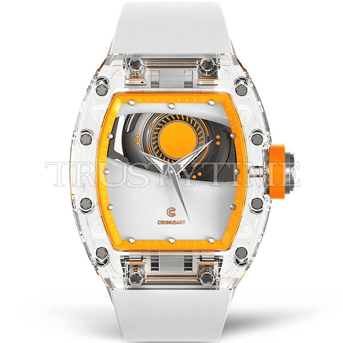 Часы CronusArt из коллекции . Спортивные мужские часы CronusArt Crystal Watch CM001-035 Оригинал (Артикул магазина: CA-0357) оснащены надежным автоматическим механизмом с автоподзаводом (работает от амплитуды движения руки) калибра , в котором реализованы следующие функции: , а так же . Бочкообразный корпус часов , имеющий размер 42 мм X 51 мм и высоту превосходно дополнит образ и украсит запястье своего обладателя. Для изготовления часов CronusArt Crystal Watch CM001-035 предлагаемых в нашем интернет-магазине, применяются высокого качества (Швейцарский стандарт), а так же сапфировое стекло высокой прочности, благодаря чему обеспечивается максимальная защита от сколов и механических повреждений. Отличительной чертой данной модели является циферблат, . Завершает образ каучуковый ремешок с фирменной раскладывающейся застежкой CronusArt. Водонепроницаемость данной модели составляет .Доступные варианты оплаты: