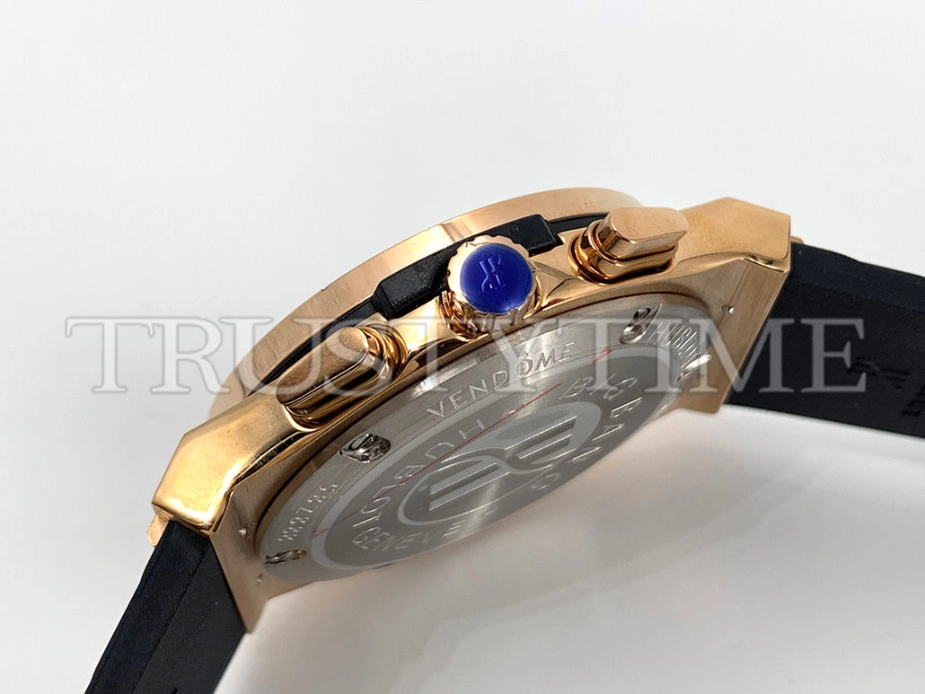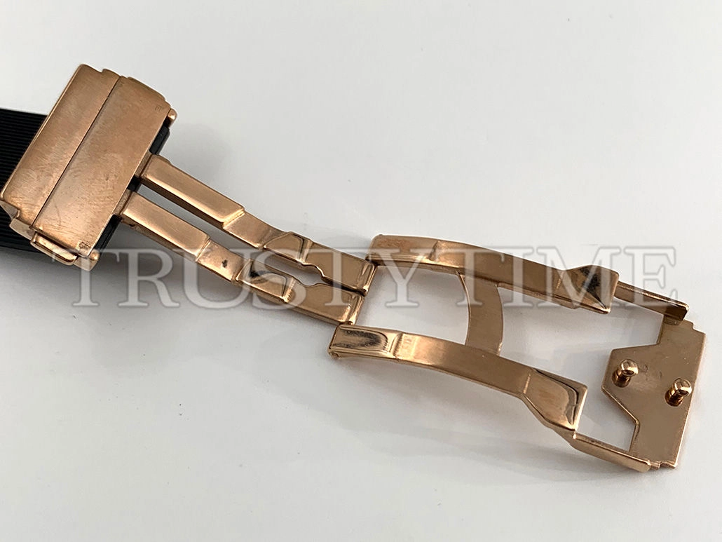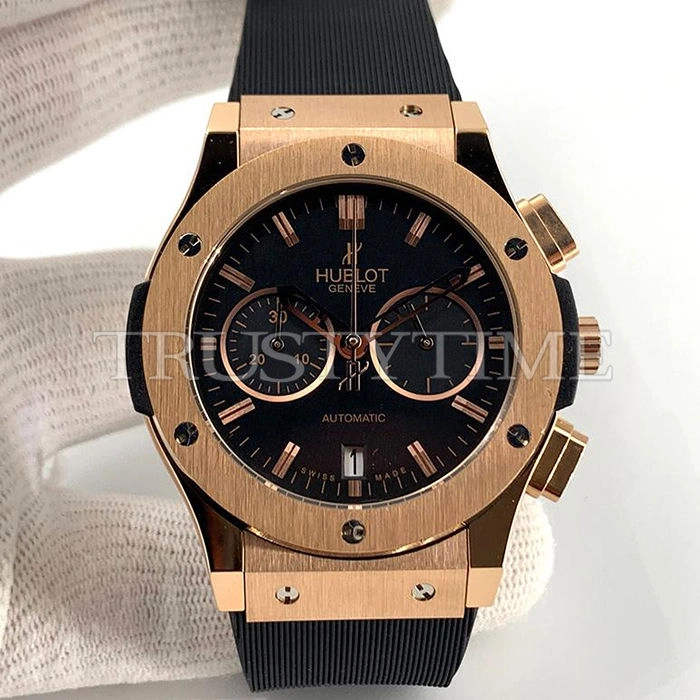Часы Hublot из коллекции Classic Fusion Chronograph. Спортивные мужские часы Hublot Classic Fusion Chronograph качества ААА+ (Артикул магазина: HB-0013) оснащены надежным кварцевым механизмом (работает от батареи) калибра Quartz ETA 256.031, в котором реализованы следующие функции: часовая, минутная и секундная стрелки, а так же хронограф, дата. Круглый корпус часов розового цвета, имеющий размер 42 мм и высоту 12 мм превосходно дополнит образ и украсит запястье своего обладателя. Для изготовления часов Hublot Classic Fusion Chronograph предлагаемых в нашем интернет-магазине, применяются нержавеющая сталь 316L высокого качества (Швейцарский стандарт), а так же сапфировое стекло высокой прочности, благодаря чему обеспечивается максимальная защита от сколов и механических повреждений. Отличительной чертой данной модели является черный циферблат, часовые индексы которого обеспечивают часовые метки. Завершает образ каучуковый ремешок черного цвета с фирменной раскладывающейся застежкой Hublot. Водонепроницаемость данной модели составляет 30М (WR30) – допускается минимальное воздействие с водой.