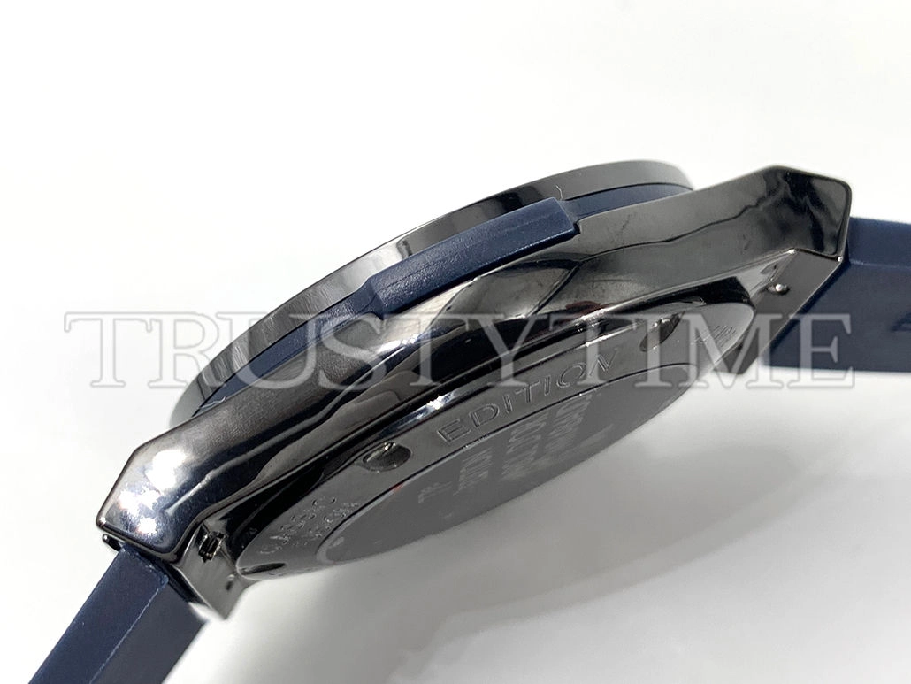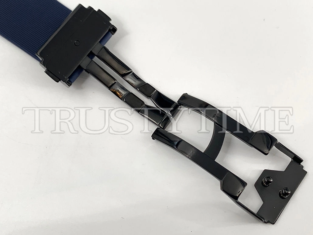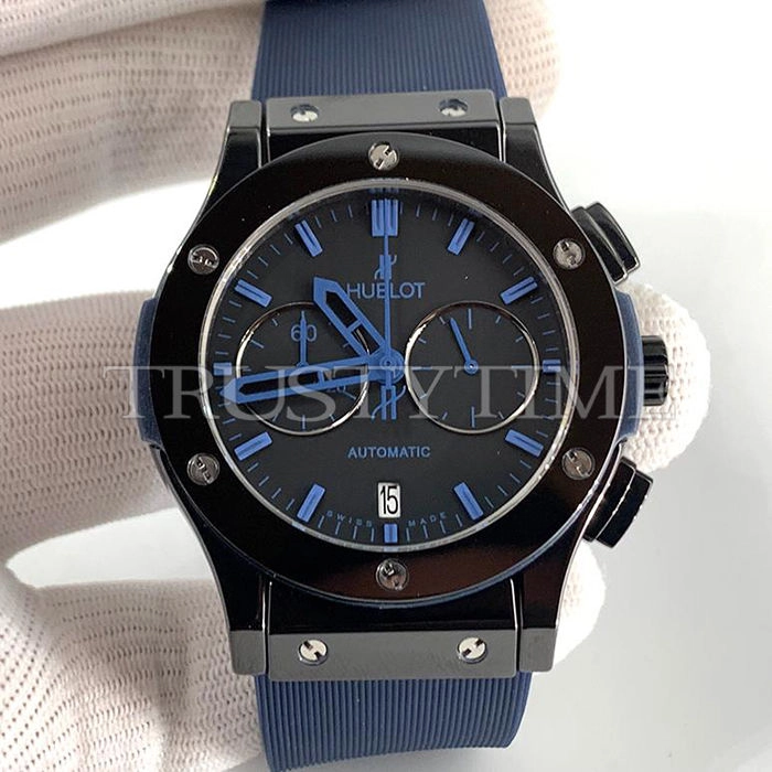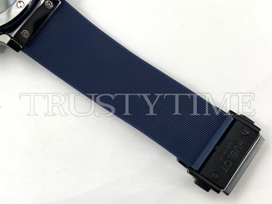 Часы Hublot из коллекции Classic Fusion Chronograph. Спортивные мужские часы Hublot Classic Fusion Chronograph качества ААА+ (Артикул магазина: HB-0296) оснащены надежным кварцевым механизмом (работает от батареи) калибра Quartz ETA 256.031, в котором реализованы следующие функции: часовая, минутная и секундная стрелки, а так же хронограф, дата. Круглый корпус часов черного цвета, имеющий размер 42 мм и высоту 13 мм превосходно дополнит образ и украсит запястье своего обладателя. Для изготовления часов Hublot Classic Fusion Chronograph предлагаемых в нашем интернет-магазине, применяются нержавеющая сталь 316L высокого качества (Швейцарский стандарт), а так же сапфировое стекло высокой прочности, благодаря чему обеспечивается максимальная защита от сколов и механических повреждений. Отличительной чертой данной модели является черный циферблат, часовые индексы которого обеспечивают часовые метки. Завершает образ каучуковый ремешок синего цвета с фирменной раскладывающейся застежкой Hublot. Водонепроницаемость данной модели составляет 30М (WR30) – допускается минимальное воздействие с водой.