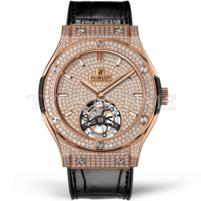 Реплика часов Hublot Classic Fusion Tourbillon King Gold Full Pave 45mm 505.OX.9010.LR.1704