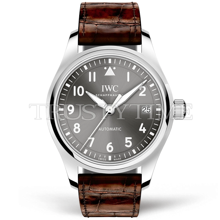 Часы IWC из коллекции Pilot's. Классические женские часы IWC Pilot's Watch Automatic 36mm IW324001 премиального качества (Артикул магазина: IW-0808) оснащены надежным автоматическим механизмом с автоподзаводом (работает от амплитуды движения руки) калибра ETA2892, в котором реализованы следующие функции: часовая, минутная и секундная стрелки, а так же дата. Круглый корпус часов стального цвета, имеющий размер 36 мм и высоту 10.5 мм превосходно дополнит образ и украсит запястье своего обладателя. Для изготовления часов IWC Pilot's Watch Automatic 36mm IW324001 предлагаемых в нашем интернет-магазине, применяются нержавеющая сталь 316L высокого качества (Швейцарский стандарт), а так же сапфировое стекло высокой прочности, благодаря чему обеспечивается максимальная защита от сколов и механических повреждений. Отличительной чертой данной модели является серый циферблат, часовые индексы которого обеспечивают арабские цифры. Завершает образ кожаный ремешок коричневого цвета с фирменной классической застежкой IWC. Водонепроницаемость данной модели составляет 30М (WR30) – допускается минимальное воздействие с водой.