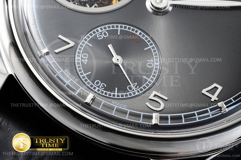 Часы IWC из коллекции Portugieser Tourbillon. Классические мужские часы IWC Portugieser Tourbillon Hand-Wound Red Gold 43mm IW546301 премиального качества (Артикул магазина: IW-0724) оснащены надежным автоматическим механизмом с ручным заводом калибра Seagull Handwind Tourbillon, в котором реализованы следующие функции: часовая, минутная и секундная стрелки, а так же турбийон. Круглый корпус часов стального цвета, имеющий размер 43 мм и высоту 14 мм превосходно дополнит образ и украсит запястье своего обладателя. Для изготовления часов IWC Portugieser Tourbillon Hand-Wound Red Gold 43mm IW546301 предлагаемых в нашем интернет-магазине, применяются нержавеющая сталь 316L высокого качества (Швейцарский стандарт), а так же сапфировое стекло высокой прочности, благодаря чему обеспечивается максимальная защита от сколов и механических повреждений. Отличительной чертой данной модели является серый циферблат, часовые индексы которого обеспечивают арабские цифры. Завершает образ кожаный ремешок коричневого цвета с фирменной раскладывающейся застежкой IWC. Водонепроницаемость данной модели составляет 30М (WR30) – допускается минимальное воздействие с водой.