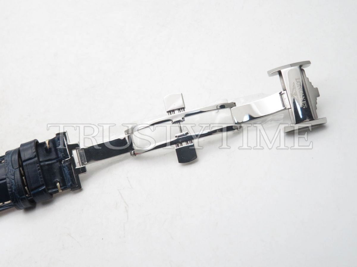 Часы Longines из коллекции Master Moonphase. Классические мужские часы Longines Master Collection Moonphase 40mm L2.909.4.92.0 премиального качества (Артикул магазина: LN-0315) оснащены надежным автоматическим механизмом с автоподзаводом (работает от амплитуды движения руки) калибра 899, в котором реализованы следующие функции: часовая, минутная и секундная стрелки, а так же дата, фаза луны. Круглый корпус часов стального цвета, имеющий размер 40 мм и высоту 12 мм превосходно дополнит образ и украсит запястье своего обладателя. Для изготовления часов Longines Master Collection Moonphase 40mm L2.909.4.92.0 предлагаемых в нашем интернет-магазине, применяются нержавеющая сталь 316F высокого качества (Швейцарский стандарт), а так же сапфировое стекло высокой прочности, благодаря чему обеспечивается максимальная защита от сколов и механических повреждений. Отличительной чертой данной модели является синий циферблат, часовые индексы которого обеспечивают часовые метки. Завершает образ кожаный ремешок синего цвета с фирменной раскладывающейся застежкой Longines. Водонепроницаемость данной модели составляет 30М (WR30) – допускается минимальное воздействие с водой.