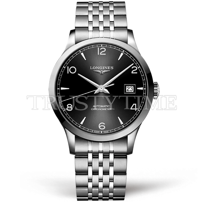 Часы Longines из коллекции Record Collection. Классические мужские часы Longines Tradition Record Collection 40mm L2.821.4.56.6 премиального качества (Артикул магазина: LN-0399) оснащены надежным автоматическим механизмом с автоподзаводом (работает от амплитуды движения руки) калибра L888, в котором реализованы следующие функции: часовая, минутная и секундная стрелки, а так же дата. Круглый корпус часов стального цвета, имеющий размер 40 мм и высоту 11.2 мм превосходно дополнит образ и украсит запястье своего обладателя. Для изготовления часов Longines Tradition Record Collection 40mm L2.821.4.56.6 предлагаемых в нашем интернет-магазине, применяются нержавеющая сталь 316F высокого качества (Швейцарский стандарт), а так же сапфировое стекло высокой прочности, благодаря чему обеспечивается максимальная защита от сколов и механических повреждений. Отличительной чертой данной модели является черный циферблат, часовые индексы которого обеспечивают арабские цифры, часовые индексы которого обеспечивают часовые метки. Завершает образ браслет из нержавеющей стали стального цвета с фирменной раскладывающейся застежкой Longines. Водонепроницаемость данной модели составляет 30М (WR30) – допускается минимальное воздействие с водой.