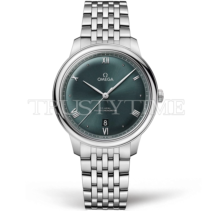 Часы Omega из коллекции De Ville Prestige. Классические мужские часы Omega De Ville Prestige Co‑Axial Master Chronometer 40mm 434.10.40.20.10 премиального качества (Артикул магазина: OM-1010) оснащены надежным автоматическим механизмом с автоподзаводом (работает от амплитуды движения руки) калибра 8800, в котором реализованы следующие функции: часовая, минутная и секундная стрелки, а так же дата. Круглый корпус часов стального цвета, имеющий размер 40 мм и высоту 11 мм превосходно дополнит образ и украсит запястье своего обладателя. Для изготовления часов Omega De Ville Prestige Co‑Axial Master Chronometer 40mm 434.10.40.20.10 предлагаемых в нашем интернет-магазине, применяются нержавеющая сталь 316F высокого качества (Швейцарский стандарт), а так же сапфировое стекло высокой прочности, благодаря чему обеспечивается максимальная защита от сколов и механических повреждений. Отличительной чертой данной модели является зеленый циферблат, часовые индексы которого обеспечивают римские цифры, часовые индексы которого обеспечивают часовые метки. Завершает образ браслет из нержавеющей стали стального цвета с фирменной раскладывающейся застежкой Omega. Водонепроницаемость данной модели составляет 30М (WR30) – допускается минимальное воздействие с водой.