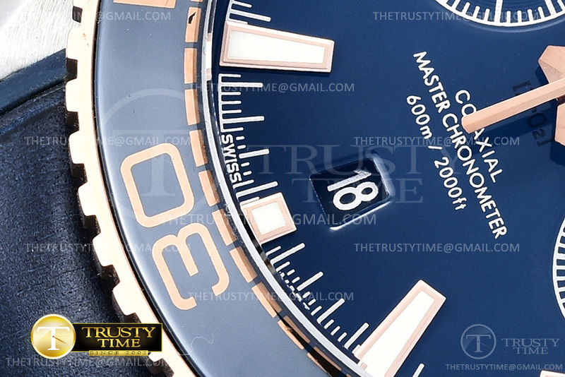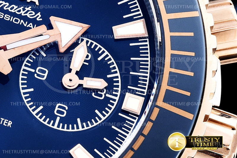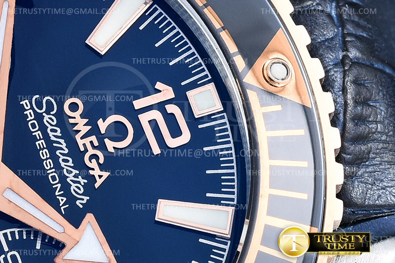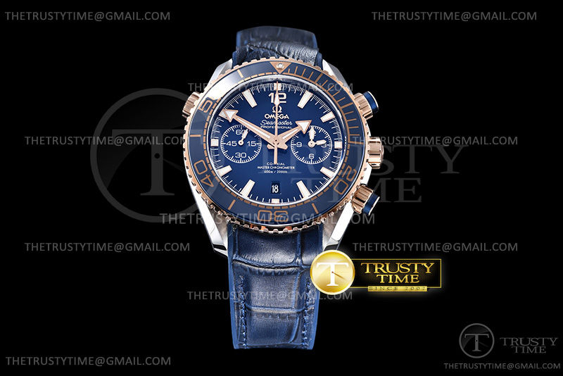 Часы Omega из коллекции Seamaster Planet Ocean Chronograph. Спортивные мужские часы Omega Seamaster Planet Ocean 600m Co‑Axial Master Chronometer Chronograph 45.5mm 215.23.46.51.03.001 премиального качества (Артикул магазина: OM-0625) оснащены надежным автоматическим механизмом с автоподзаводом (работает от амплитуды движения руки) калибра 9301, в котором реализованы следующие функции: часовая, минутная и секундная стрелки, а так же хронограф, дата. Круглый корпус часов комбинированного сталь с розового золота цвета, имеющий размер 45.5 мм и высоту 18 мм превосходно дополнит образ и украсит запястье своего обладателя. Для изготовления часов Omega Seamaster Planet Ocean 600m Co‑Axial Master Chronometer Chronograph 45.5mm 215.23.46.51.03.001 предлагаемых в нашем интернет-магазине, применяются нержавеющая сталь 316L высокого качества (Швейцарский стандарт), а так же сапфировое стекло высокой прочности, благодаря чему обеспечивается максимальная защита от сколов и механических повреждений. Отличительной чертой данной модели является синий циферблат, часовые индексы которого обеспечивают часовые метки. Завершает образ кожаный ремешок синего цвета с фирменной раскладывающейся застежкой Omega. Водонепроницаемость данной модели составляет 30М (WR30) – допускается минимальное воздействие с водой.