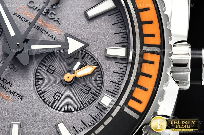 Часы Omega из коллекции Seamaster Planet Ocean Chronograph. Спортивные мужские часы Omega Seamaster Planet Ocean 600m Co‑Axial Master Chronometer Chronograph 45.5mm 215.92.46.51.99.001 премиального качества (Артикул магазина: OM-0593) оснащены надежным автоматическим механизмом с автоподзаводом (работает от амплитуды движения руки) калибра 9900, в котором реализованы следующие функции: часовая, минутная и секундная стрелки, а так же хронограф, дата. Круглый корпус часов стального цвета, имеющий размер 45.5 мм и высоту 18 мм превосходно дополнит образ и украсит запястье своего обладателя. Для изготовления часов Omega Seamaster Planet Ocean 600m Co‑Axial Master Chronometer Chronograph 45.5mm 215.92.46.51.99.001 предлагаемых в нашем интернет-магазине, применяются нержавеющая сталь 316F высокого качества (Швейцарский стандарт), а так же сапфировое стекло высокой прочности, благодаря чему обеспечивается максимальная защита от сколов и механических повреждений. Отличительной чертой данной модели является серый циферблат, часовые индексы которого обеспечивают часовые метки. Завершает образ нейлоновый ремешок серого цвета с фирменной раскладывающейся застежкой Omega. Водонепроницаемость данной модели составляет 30М (WR30) – допускается минимальное воздействие с водой.
