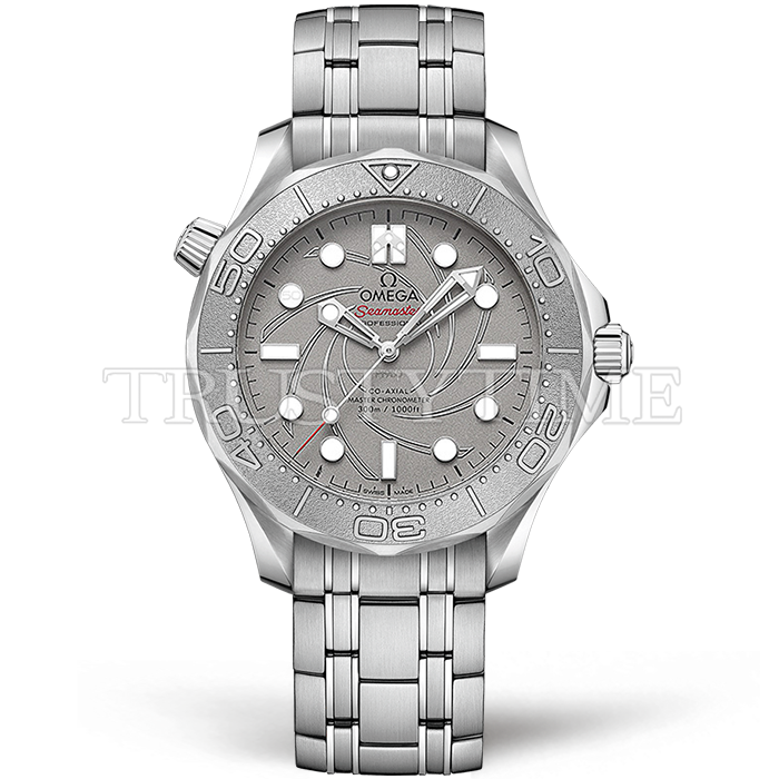 Часы Omega из коллекции Seamaster Diver. Спортивные мужские часы Omega Seamaster Diver 300M Master Co-Axial Platinum Aston Martin Neiman Marcus 42mm 210.93.42.20.99.001 премиального качества (Артикул магазина: OM-0876) оснащены надежным автоматическим механизмом с автоподзаводом (работает от амплитуды движения руки) калибра 8807, в котором реализованы следующие функции: часовая, минутная и секундная стрелки, а так же максимально простой функционал без усложнений. Круглый корпус часов стального цвета, имеющий размер 42 мм и высоту 13.5 мм превосходно дополнит образ и украсит запястье своего обладателя. Для изготовления часов Omega Seamaster Diver 300M Master Co-Axial Platinum Aston Martin Neiman Marcus 42mm 210.93.42.20.99.001 предлагаемых в нашем интернет-магазине, применяются нержавеющая сталь 316F высокого качества (Швейцарский стандарт), а так же сапфировое стекло высокой прочности, благодаря чему обеспечивается максимальная защита от сколов и механических повреждений. Отличительной чертой данной модели является серый циферблат, часовые индексы которого обеспечивают часовые метки. Завершает образ браслет из нержавеющей стали стального цвета с фирменной раскладывающейся застежкой Omega. Водонепроницаемость данной модели составляет 30М (WR30) – допускается минимальное воздействие с водой.