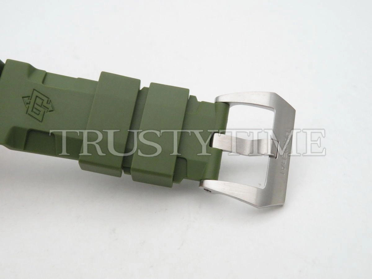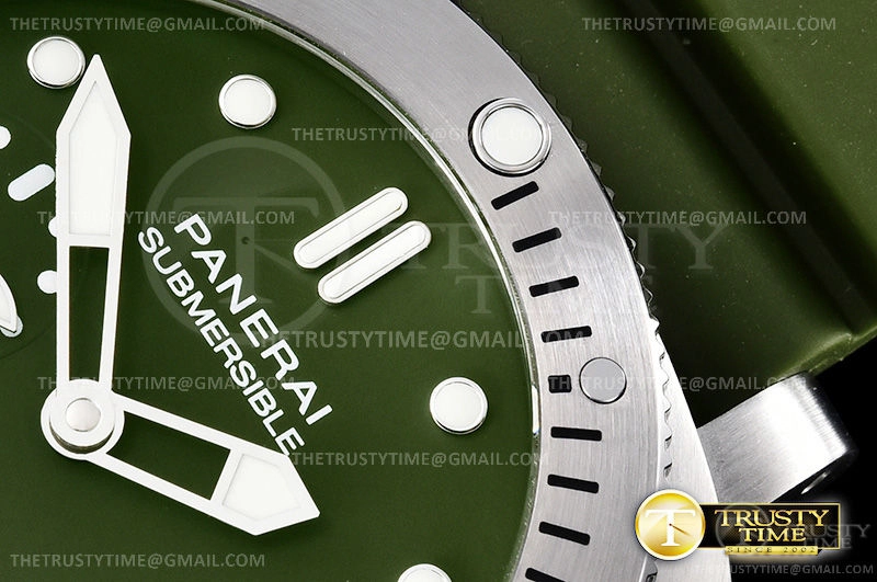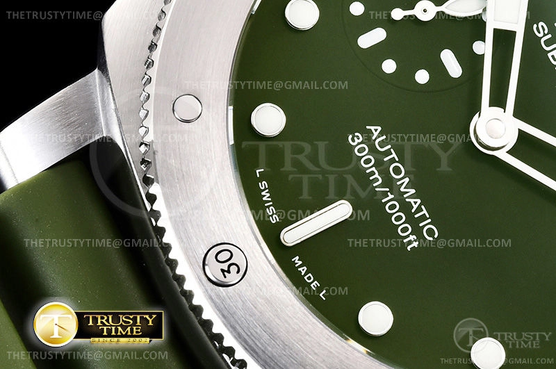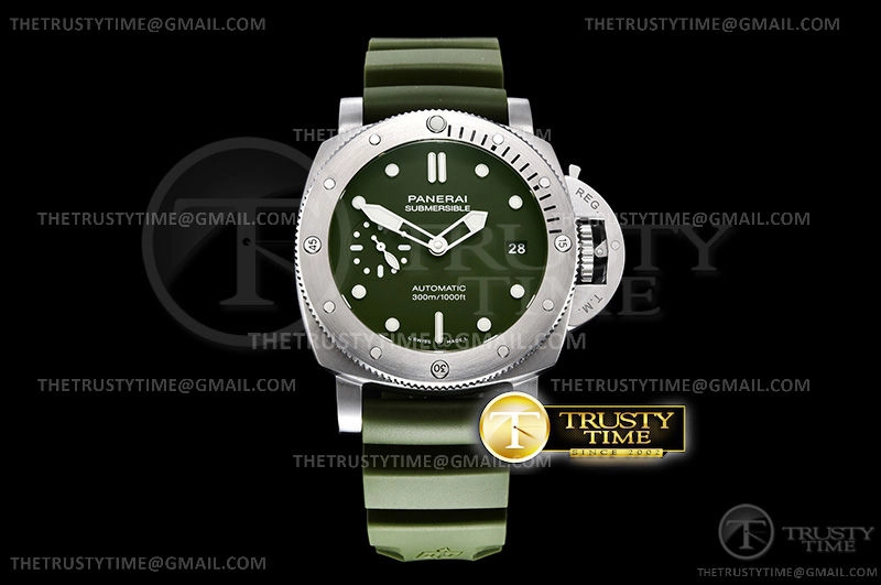 Часы Panerai из коллекции Submersible. Классические мужские часы Panerai Luminor Submersible 3 Days Automatic 42mm PAM01055 премиального качества (Артикул магазина: PN-0758) оснащены надежным автоматическим механизмом с автоподзаводом (работает от амплитуды движения руки) калибра P900, в котором реализованы следующие функции: часовая, минутная и секундная стрелки, а так же дата. Круглый корпус часов стального цвета, имеющий размер 42 мм и высоту 14.5 мм превосходно дополнит образ и украсит запястье своего обладателя. Для изготовления часов Panerai Luminor Submersible 3 Days Automatic 42mm PAM01055 предлагаемых в нашем интернет-магазине, применяются нержавеющая сталь 316F высокого качества (Швейцарский стандарт), а так же сапфировое стекло высокой прочности, благодаря чему обеспечивается максимальная защита от сколов и механических повреждений. Отличительной чертой данной модели является зеленый циферблат, часовые индексы которого обеспечивают часовые метки. Завершает образ каучуковый ремешок зеленого цвета с фирменной классической застежкой Panerai. Водонепроницаемость данной модели составляет 30М (WR30) – допускается минимальное воздействие с водой.