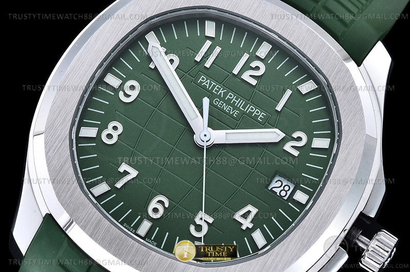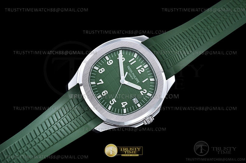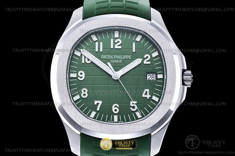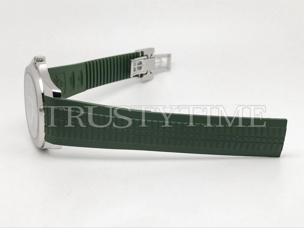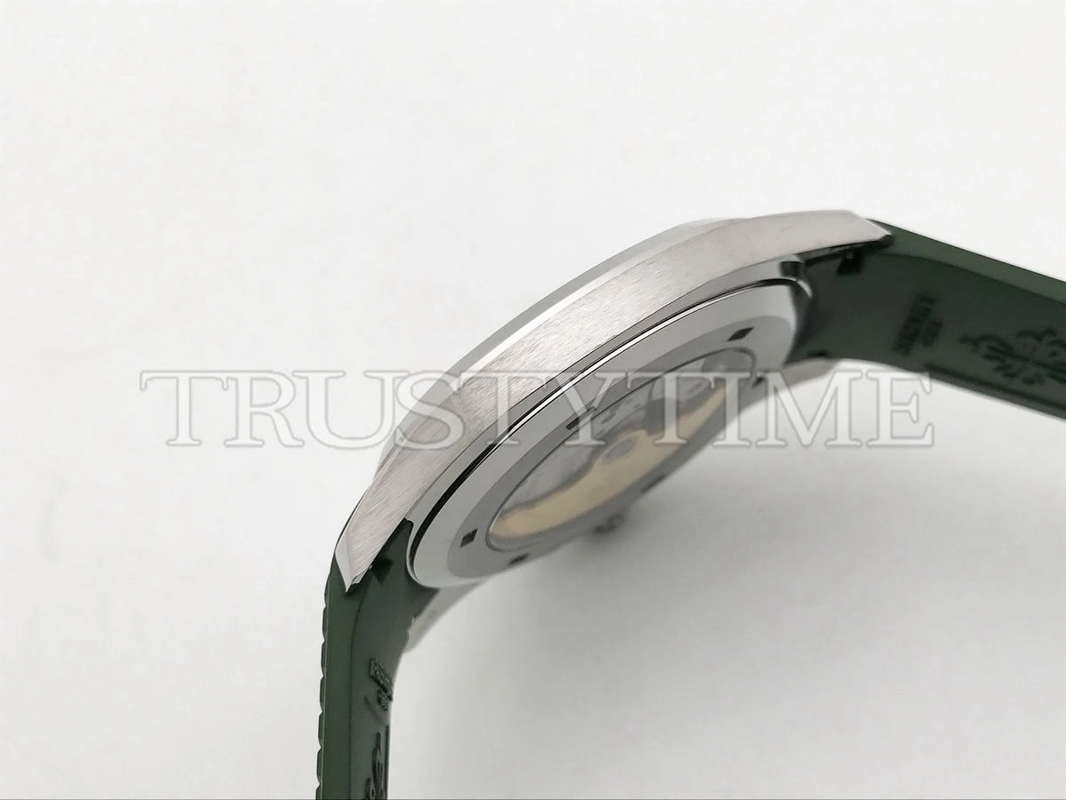 Часы Patek Philippe из коллекции Aquanaut. Классические мужские часы Patek Philippe Aquanaut 42mm 5168G-010 V2 премиального качества (Артикул магазина: PP-0787) оснащены надежным автоматическим механизмом с автоподзаводом (работает от амплитуды движения руки) калибра PP26‑330SC, в котором реализованы следующие функции: часовая, минутная и секундная стрелки, а так же дата. Восьмиугольный корпус часов стального цвета, имеющий размер 42 мм и высоту 8.3 мм превосходно дополнит образ и украсит запястье своего обладателя. Для изготовления часов Patek Philippe Aquanaut 42mm 5168G-010 V2 предлагаемых в нашем интернет-магазине, применяются нержавеющая сталь 316F высокого качества (Швейцарский стандарт), а так же сапфировое стекло высокой прочности, благодаря чему обеспечивается максимальная защита от сколов и механических повреждений. Отличительной чертой данной модели является зеленый циферблат, часовые индексы которого обеспечивают арабские цифры. Завершает образ каучуковый ремешок зеленого цвета с фирменной раскладывающейся застежкой Patek Philippe. Водонепроницаемость данной модели составляет 30М (WR30) – допускается минимальное воздействие с водой.
