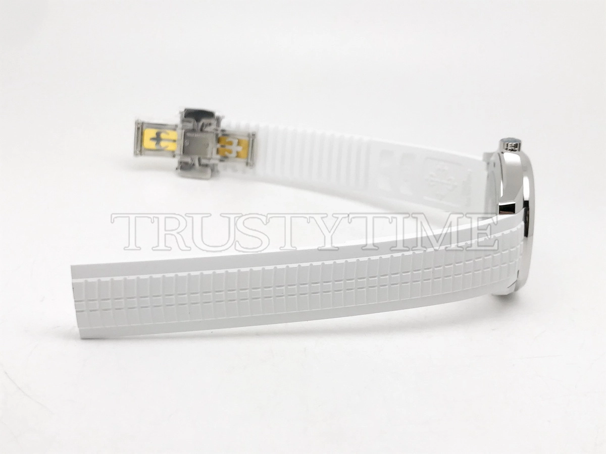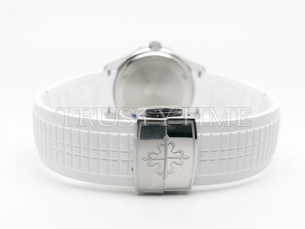 Часы Patek Philippe из коллекции Aquanaut Luce. Классические женские часы Patek Philippe Aquanaut Luce 38.8mm 5267/200A-010 премиального качества (Артикул магазина: PP-0822) оснащены надежным кварцевым механизмом (работает от батареи) калибра Swiss Quartz ETA, в котором реализованы следующие функции: часовая, минутная и секундная стрелки, а так же дата. Восьмиугольный корпус часов стального цвета, имеющий размер 38.8 мм и высоту 8 мм превосходно дополнит образ и украсит запястье своего обладателя. Для изготовления часов Patek Philippe Aquanaut Luce 38.8mm 5267/200A-010 предлагаемых в нашем интернет-магазине, применяются нержавеющая сталь 316F высокого качества (Швейцарский стандарт), а так же сапфировое стекло высокой прочности, благодаря чему обеспечивается максимальная защита от сколов и механических повреждений. Отличительной чертой данной модели является белый циферблат, часовые индексы которого обеспечивают арабские цифры. Завершает образ каучуковый ремешок белого цвета с фирменной раскладывающейся застежкой Patek Philippe. Водонепроницаемость данной модели составляет 30М (WR30) – допускается минимальное воздействие с водой.