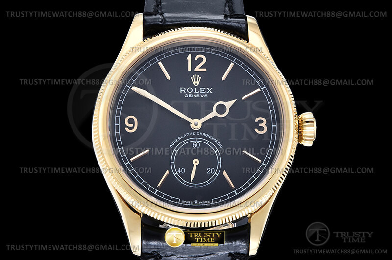 Часы Rolex из коллекции 1908. Классические мужские часы Rolex 1908 39mm 52508-0002 премиального качества (Артикул магазина: RX-3550) оснащены надежным автоматическим механизмом с автоподзаводом (работает от амплитуды движения руки) калибра 7140, в котором реализованы следующие функции: часовая, минутная и секундная стрелки, а так же максимально простой функционал без усложнений. Круглый корпус часов цветы желтой золота, имеющий размер 39 мм и высоту 11 мм превосходно дополнит образ и украсит запястье своего обладателя. Для изготовления часов Rolex 1908 39mm 52508-0002 предлагаемых в нашем интернет-магазине, применяются нержавеющая сталь 316F высокого качества (Швейцарский стандарт), а так же сапфировое стекло высокой прочности, благодаря чему обеспечивается максимальная защита от сколов и механических повреждений. Отличительной чертой данной модели является черный циферблат, часовые индексы которого обеспечивают арабские цифры, часовые индексы которого обеспечивают часовые метки. Завершает образ кожаный ремешок черного цвета с фирменной раскладывающейся застежкой Rolex. Водонепроницаемость данной модели составляет 30М (WR30) – допускается минимальное воздействие с водой.