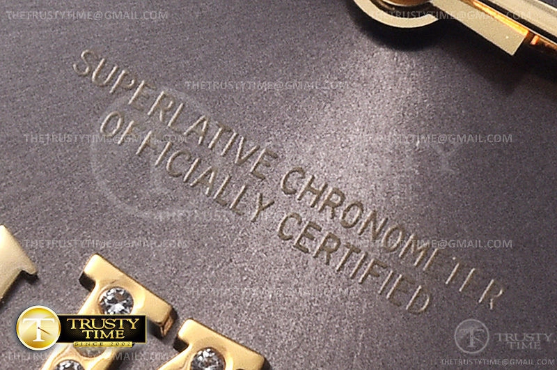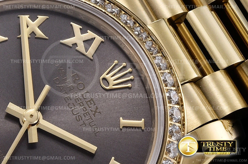 Часы Rolex из коллекции DateJust. Классические женские часы Rolex DateJust 31mm 278288RBR-0026 премиального качества (Артикул магазина: RX-0561) оснащены надежным автоматическим механизмом с автоподзаводом (работает от амплитуды движения руки) калибра ETA2824-2, в котором реализованы следующие функции: часовая, минутная и секундная стрелки, а так же дата. Круглый корпус часов цветы желтой золота, имеющий размер 31 мм и высоту 12 мм превосходно дополнит образ и украсит запястье своего обладателя. Для изготовления часов Rolex DateJust 31mm 278288RBR-0026 предлагаемых в нашем интернет-магазине, применяются нержавеющая сталь 316F высокого качества (Швейцарский стандарт), а так же сапфировое стекло высокой прочности, благодаря чему обеспечивается максимальная защита от сколов и механических повреждений. Отличительной чертой данной модели является серый циферблат, часовые индексы которого обеспечивают римские цифры. Завершает образ браслет из нержавеющей стали цвета желтого золота с фирменной раскладывающейся застежкой Rolex. Водонепроницаемость данной модели составляет 30М (WR30) – допускается минимальное воздействие с водой.