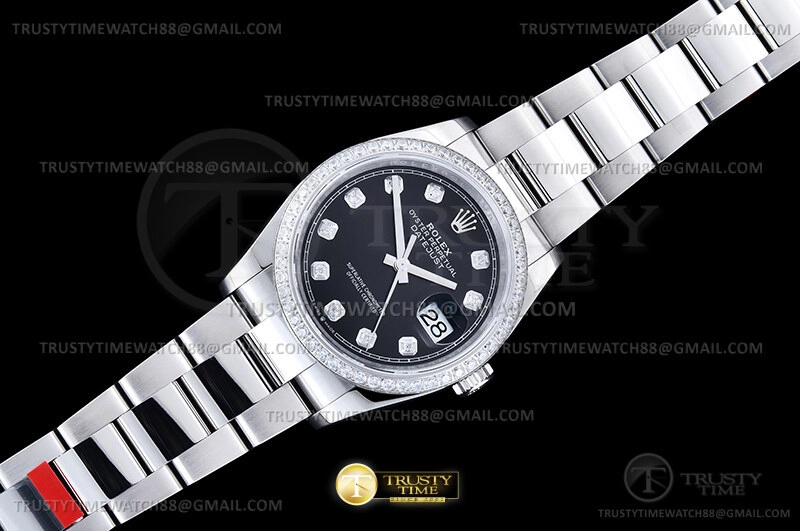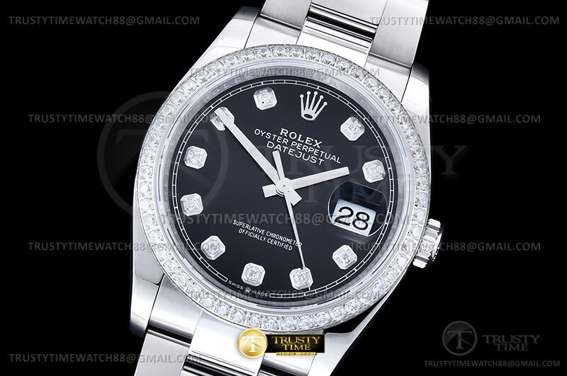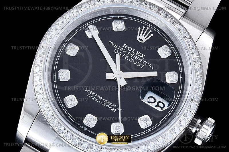 Часы Rolex из коллекции DateJust. Классические женские часы Rolex DateJust 36mm 126284RBR-0020 премиального качества (Артикул магазина: RX-2622) оснащены надежным автоматическим механизмом с автоподзаводом (работает от амплитуды движения руки) калибра 3235, в котором реализованы следующие функции: часовая, минутная и секундная стрелки, а так же дата. Круглый корпус часов стального цвета, имеющий размер 36 мм и высоту 11.6 мм превосходно дополнит образ и украсит запястье своего обладателя. Для изготовления часов Rolex DateJust 36mm 126284RBR-0020 предлагаемых в нашем интернет-магазине, применяются нержавеющая сталь 904L высокого качества (Швейцарский стандарт), а так же сапфировое стекло высокой прочности, благодаря чему обеспечивается максимальная защита от сколов и механических повреждений. Отличительной чертой данной модели является черный циферблат, часовые индексы которого обеспечивают камни. Завершает образ браслет из нержавеющей стали стального цвета с фирменной раскладывающейся застежкой Rolex. Водонепроницаемость данной модели составляет 30М (WR30) – допускается минимальное воздействие с водой.