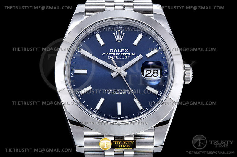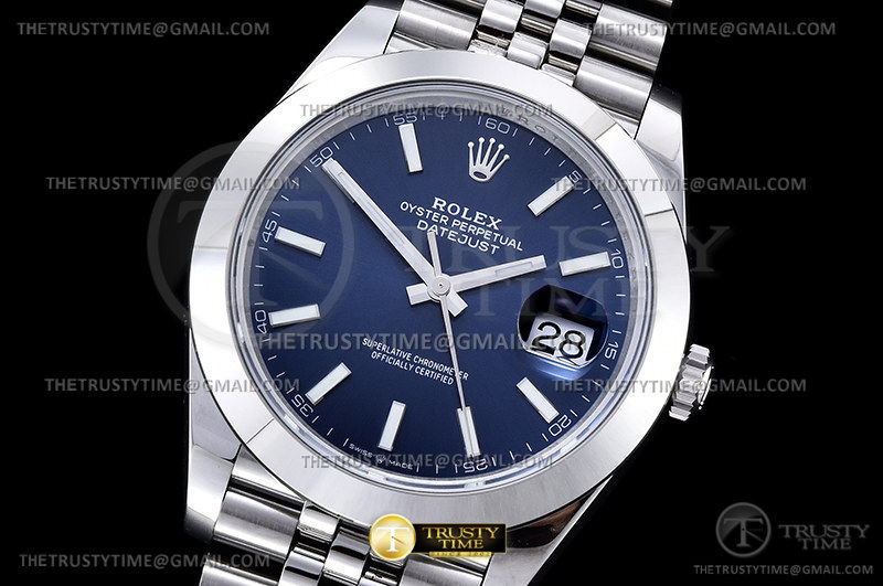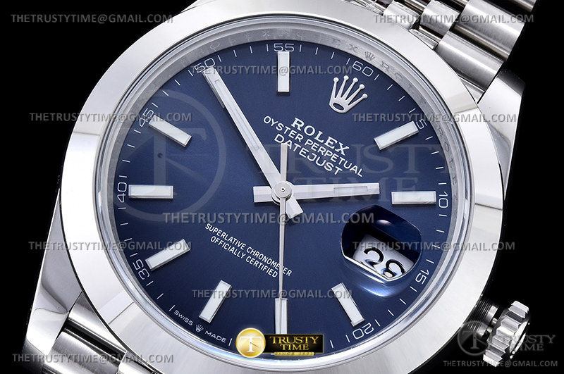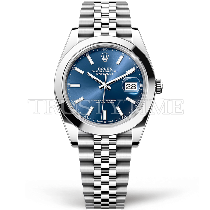 Часы Rolex из коллекции DateJust II. Классические мужские часы Rolex DateJust II 41mm 126300-0002 премиального качества (Артикул магазина: RX-1883) оснащены надежным автоматическим механизмом с автоподзаводом (работает от амплитуды движения руки) калибра 3235, в котором реализованы следующие функции: часовая, минутная и секундная стрелки, а так же дата. Круглый корпус часов стального цвета, имеющий размер 41 мм и высоту 12 мм превосходно дополнит образ и украсит запястье своего обладателя. Для изготовления часов Rolex DateJust II 41mm 126300-0002 предлагаемых в нашем интернет-магазине, применяются нержавеющая сталь 904L высокого качества (Швейцарский стандарт), а так же сапфировое стекло высокой прочности, благодаря чему обеспечивается максимальная защита от сколов и механических повреждений. Отличительной чертой данной модели является синий циферблат, часовые индексы которого обеспечивают часовые метки. Завершает образ браслет из нержавеющей стали стального цвета с фирменной раскладывающейся застежкой Rolex. Водонепроницаемость данной модели составляет 30М (WR30) – допускается минимальное воздействие с водой.