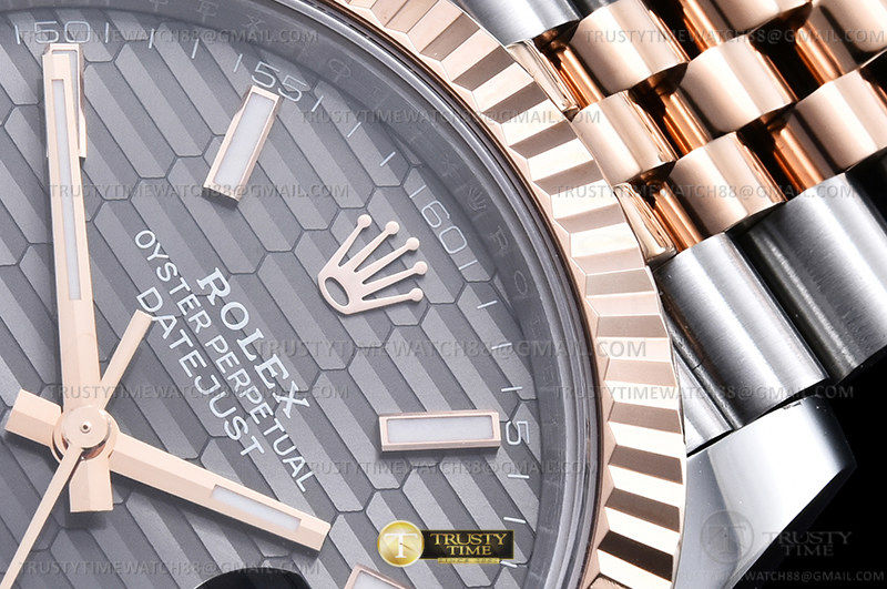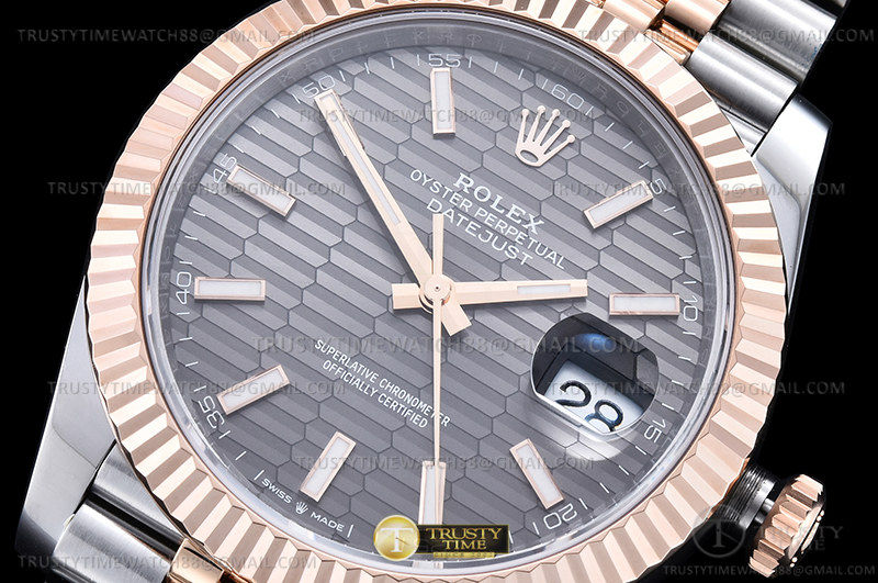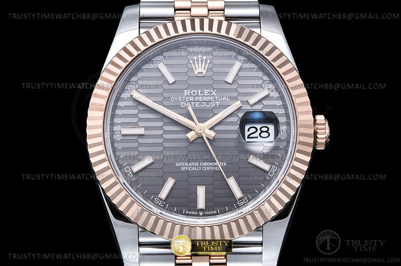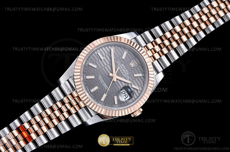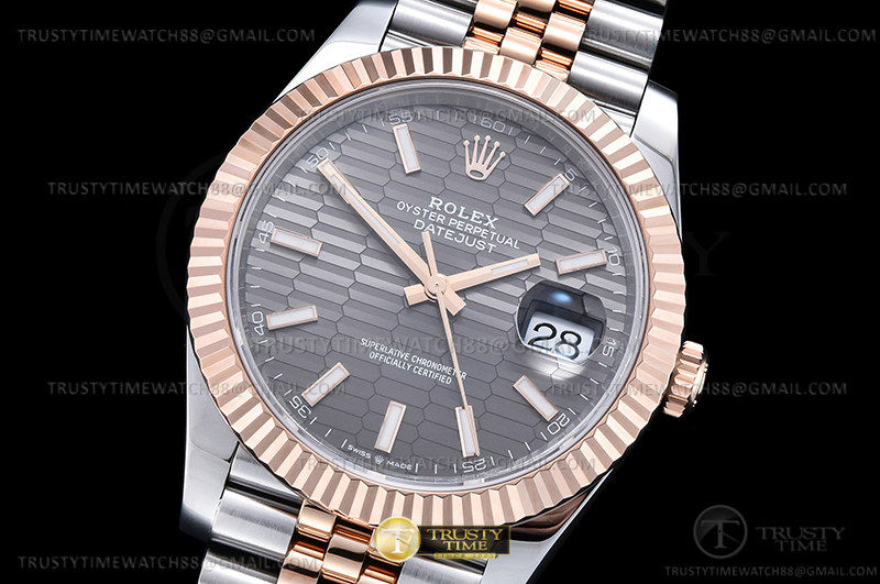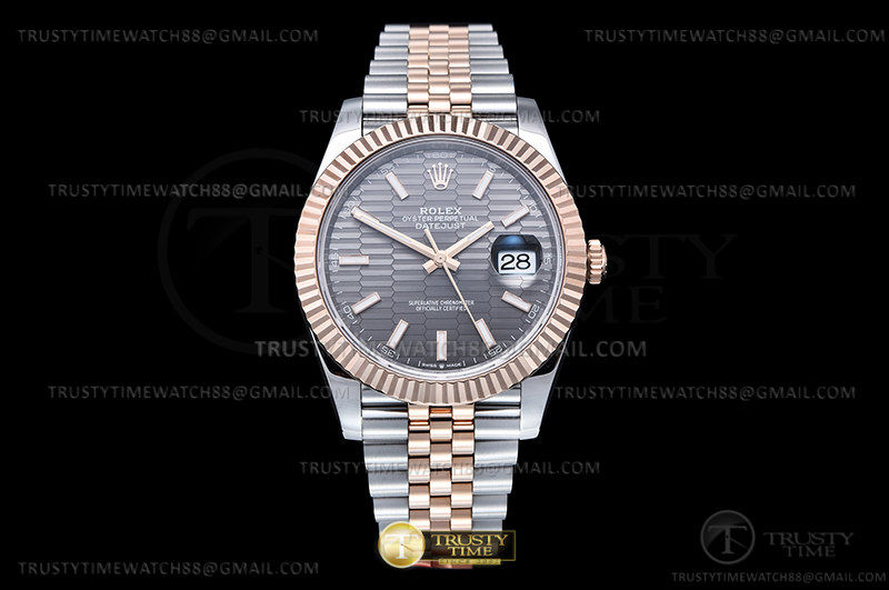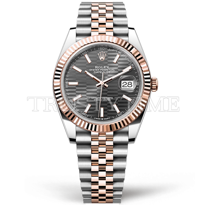 Часы Rolex из коллекции DateJust II. Классические мужские часы Rolex DateJust II 41mm 126331-0020 премиального качества (Артикул магазина: RX-2682) оснащены надежным автоматическим механизмом с автоподзаводом (работает от амплитуды движения руки) калибра 3235, в котором реализованы следующие функции: часовая, минутная и секундная стрелки, а так же дата. Круглый корпус часов комбинированного сталь с розового золота цвета, имеющий размер 41 мм и высоту 12 мм превосходно дополнит образ и украсит запястье своего обладателя. Для изготовления часов Rolex DateJust II 41mm 126331-0020 предлагаемых в нашем интернет-магазине, применяются нержавеющая сталь 904L высокого качества (Швейцарский стандарт), а так же сапфировое стекло высокой прочности, благодаря чему обеспечивается максимальная защита от сколов и механических повреждений. Отличительной чертой данной модели является серый циферблат, часовые индексы которого обеспечивают часовые метки. Завершает образ браслет из нержавеющей стали комбинированного сталь с розовым золотом цвета с фирменной раскладывающейся застежкой Rolex. Водонепроницаемость данной модели составляет 30М (WR30) – допускается минимальное воздействие с водой.
