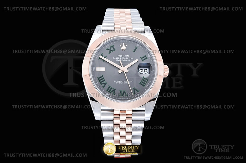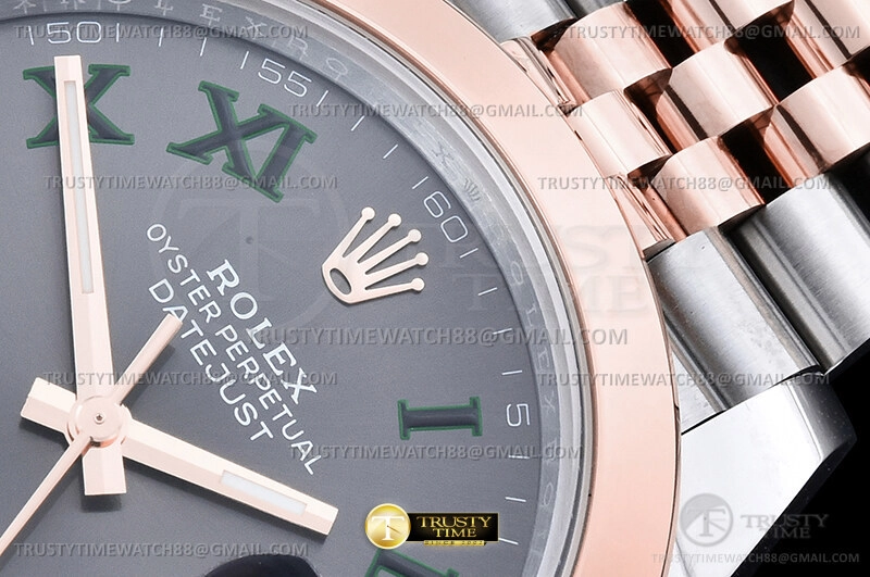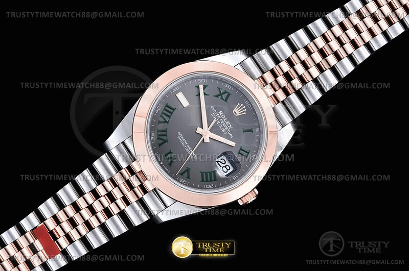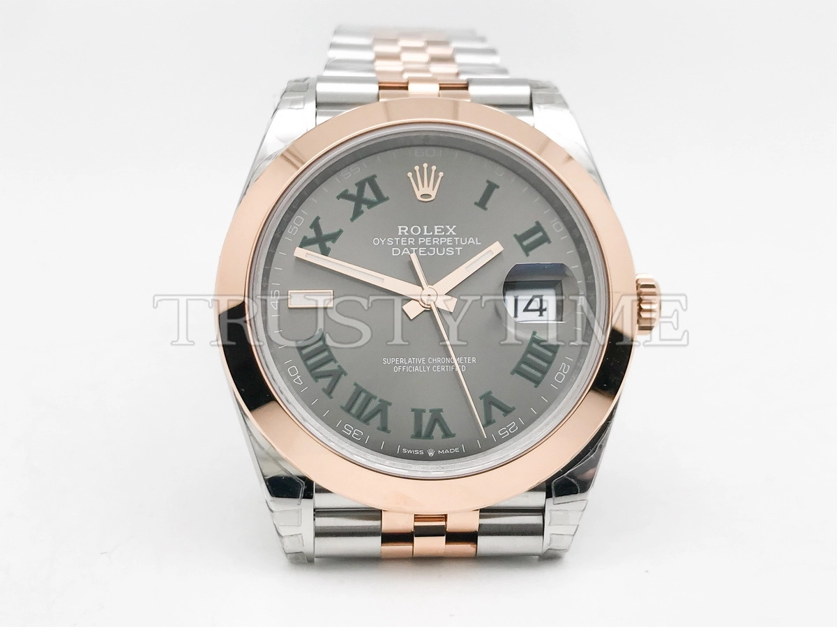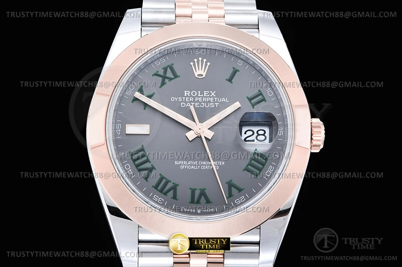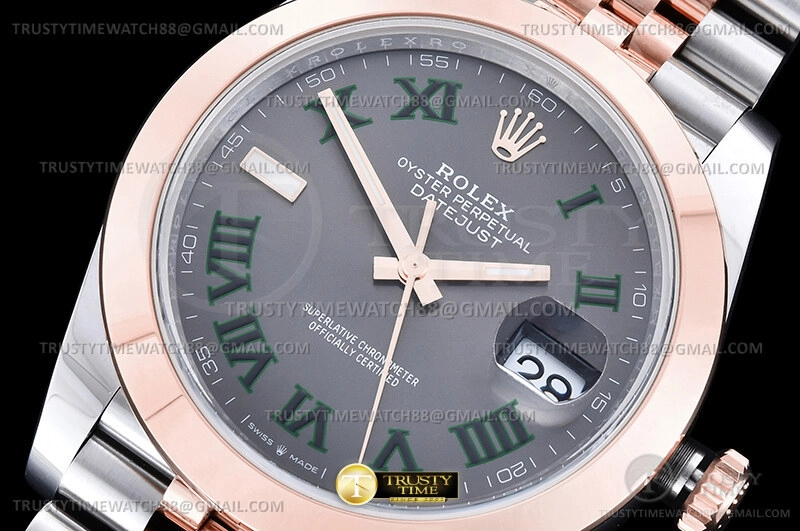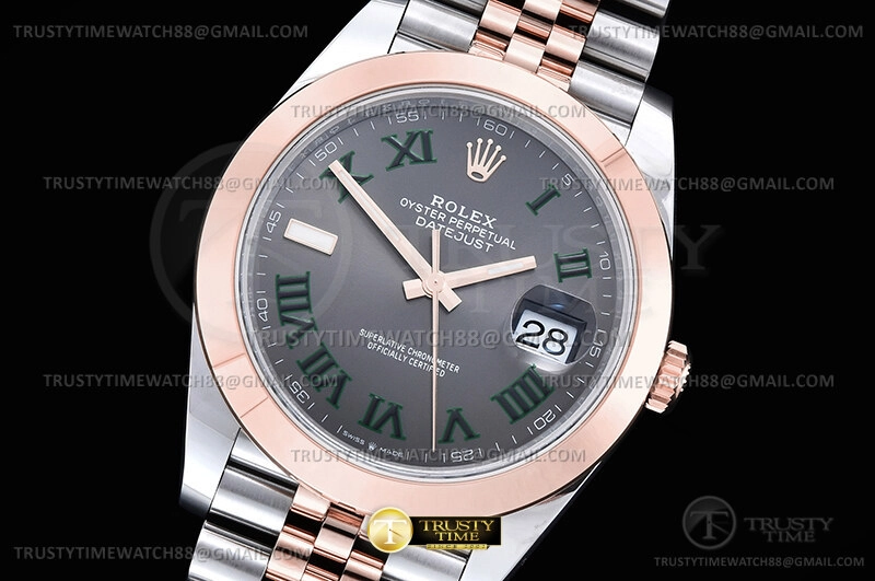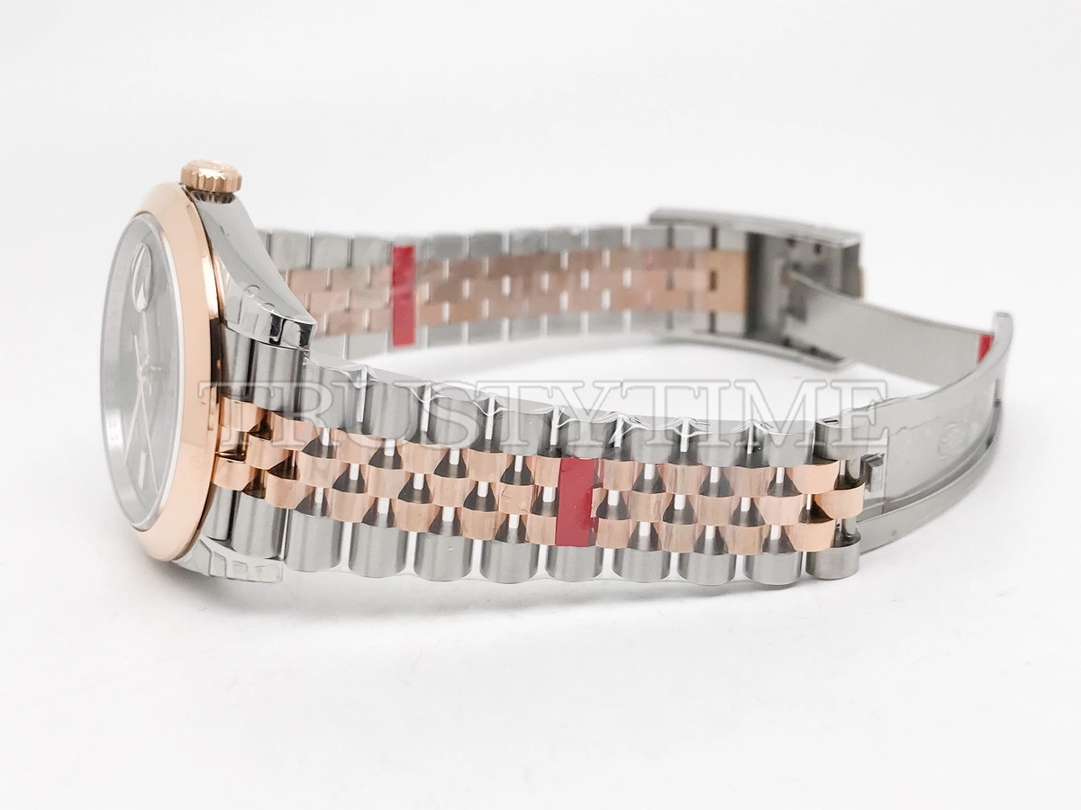 Часы Rolex из коллекции DateJust II. Классические мужские часы Rolex DateJust II 41mm 126301-0016 премиального качества (Артикул магазина: RX-2660) оснащены надежным автоматическим механизмом с автоподзаводом (работает от амплитуды движения руки) калибра 3235, в котором реализованы следующие функции: часовая, минутная и секундная стрелки, а так же дата. Круглый корпус часов комбинированного сталь с розового золота цвета, имеющий размер 41 мм и высоту 11.6 мм превосходно дополнит образ и украсит запястье своего обладателя. Для изготовления часов Rolex DateJust II 41mm 126301-0016 предлагаемых в нашем интернет-магазине, применяются нержавеющая сталь 904L высокого качества (Швейцарский стандарт), а так же сапфировое стекло высокой прочности, благодаря чему обеспечивается максимальная защита от сколов и механических повреждений. Отличительной чертой данной модели является серый циферблат, часовые индексы которого обеспечивают римские цифры. Завершает образ браслет из нержавеющей стали комбинированного сталь с розовым золотом цвета с фирменной раскладывающейся застежкой Rolex. Водонепроницаемость данной модели составляет 30М (WR30) – допускается минимальное воздействие с водой.