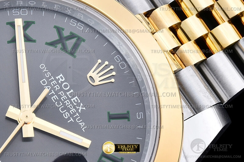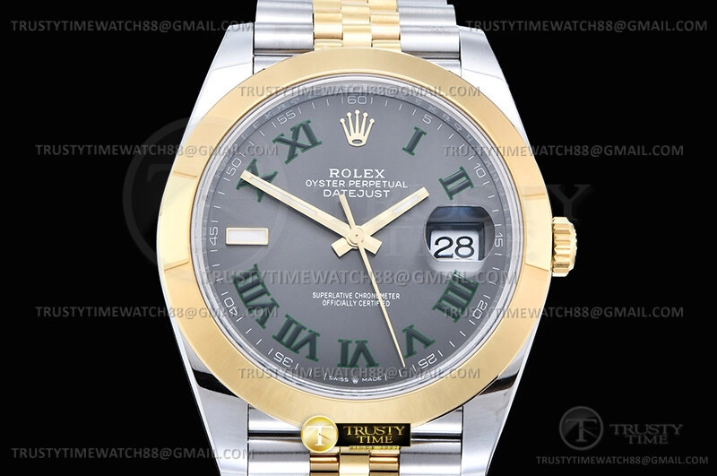 Часы Rolex из коллекции DateJust II. Классические мужские часы Rolex DateJust II 41mm 126303-0020 премиального качества (Артикул магазина: RX-2941) оснащены надежным автоматическим механизмом с автоподзаводом (работает от амплитуды движения руки) калибра 3235, в котором реализованы следующие функции: часовая, минутная и секундная стрелки, а так же дата. Круглый корпус часов комбинированного сталь с желтого золота цвета, имеющий размер 41 мм и высоту 11.6 мм превосходно дополнит образ и украсит запястье своего обладателя. Для изготовления часов Rolex DateJust II 41mm 126303-0020 предлагаемых в нашем интернет-магазине, применяются нержавеющая сталь 316F высокого качества (Швейцарский стандарт), а так же сапфировое стекло высокой прочности, благодаря чему обеспечивается максимальная защита от сколов и механических повреждений. Отличительной чертой данной модели является серый циферблат, часовые индексы которого обеспечивают римские цифры. Завершает образ браслет из нержавеющей стали комбинированного сталь с желтым золотом цвета с фирменной раскладывающейся застежкой Rolex. Водонепроницаемость данной модели составляет 30М (WR30) – допускается минимальное воздействие с водой.