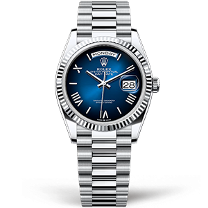 Часы Rolex из коллекции Day-Date. Классические женские часы Rolex Day-Date 36mm 128236-0020 премиального качества (Артикул магазина: RX-3439) оснащены надежным автоматическим механизмом с автоподзаводом (работает от амплитуды движения руки) калибра 3255, в котором реализованы следующие функции: часовая, минутная и секундная стрелки, а так же дата, день недели. Круглый корпус часов стального цвета, имеющий размер 36 мм и высоту 12 мм превосходно дополнит образ и украсит запястье своего обладателя. Для изготовления часов Rolex Day-Date 36mm 128236-0020 предлагаемых в нашем интернет-магазине, применяются нержавеющая сталь 904L высокого качества (Швейцарский стандарт), а так же сапфировое стекло высокой прочности, благодаря чему обеспечивается максимальная защита от сколов и механических повреждений. Отличительной чертой данной модели является синий циферблат, часовые индексы которого обеспечивают римские цифры. Завершает образ браслет из нержавеющей стали стального цвета с фирменной раскладывающейся застежкой Rolex. Водонепроницаемость данной модели составляет 30М (WR30) – допускается минимальное воздействие с водой.
