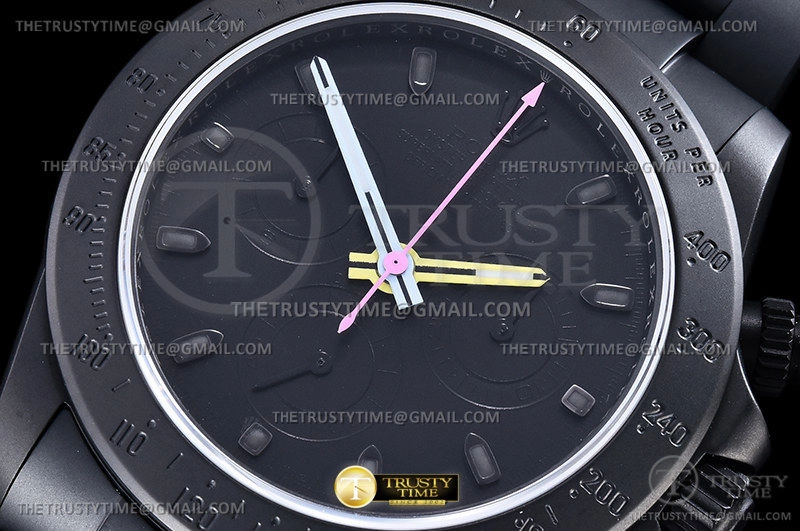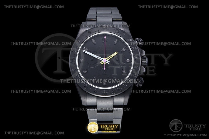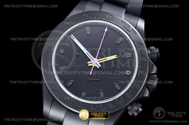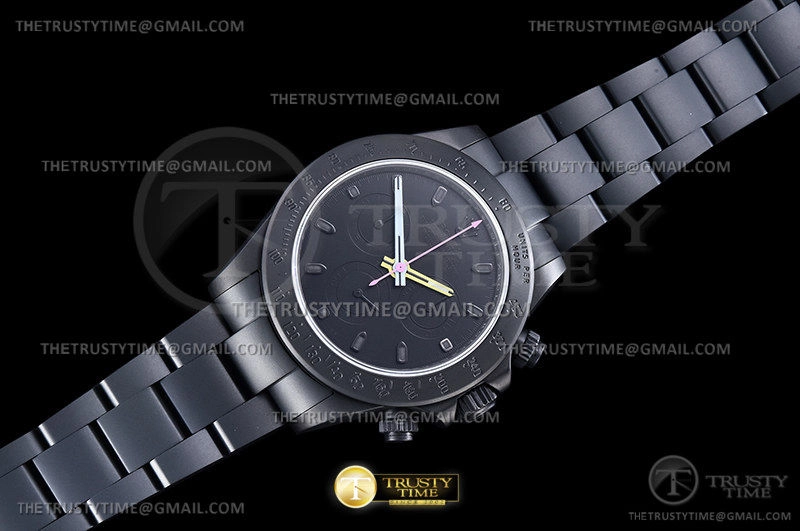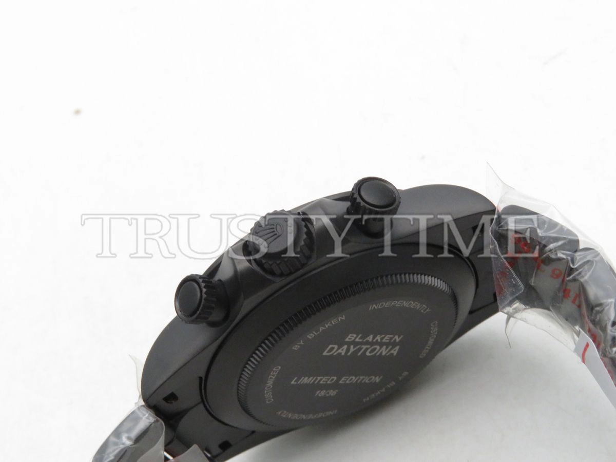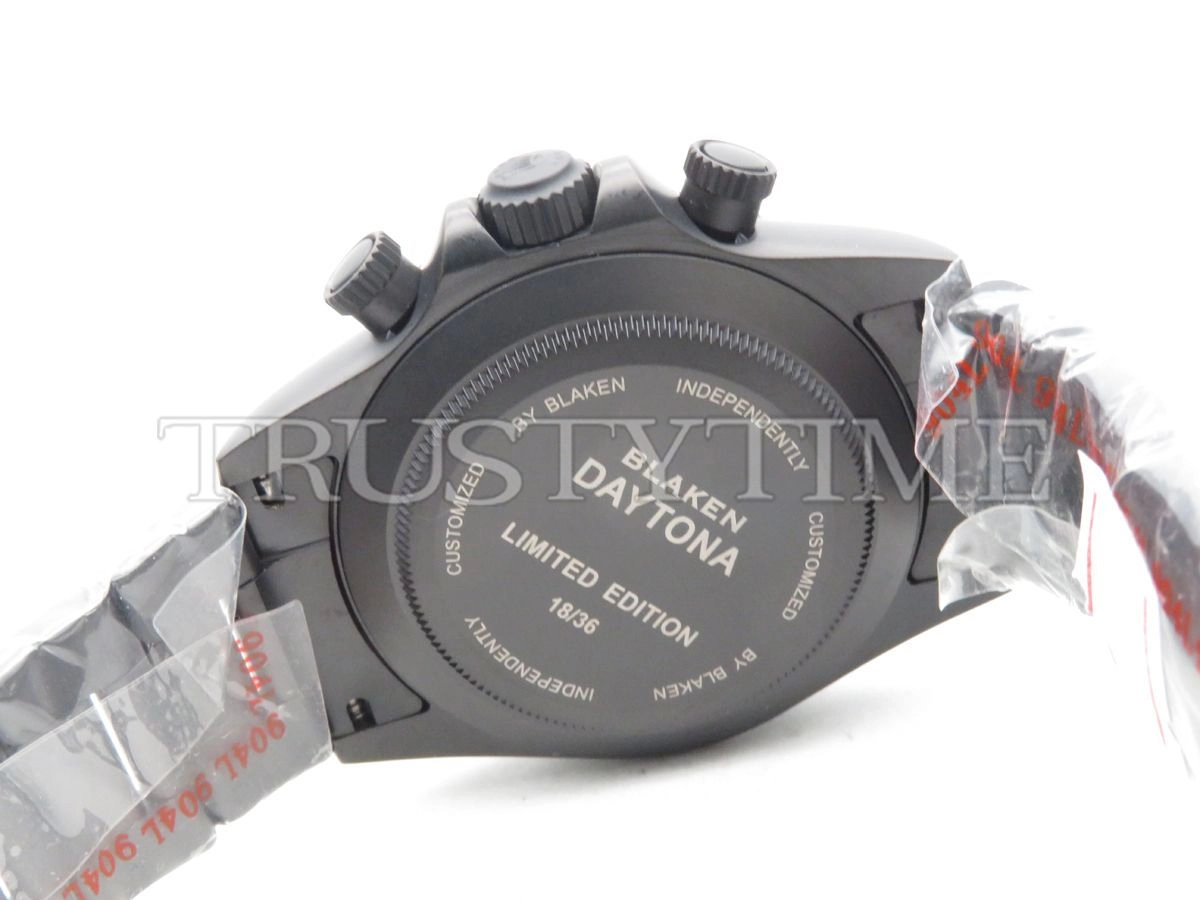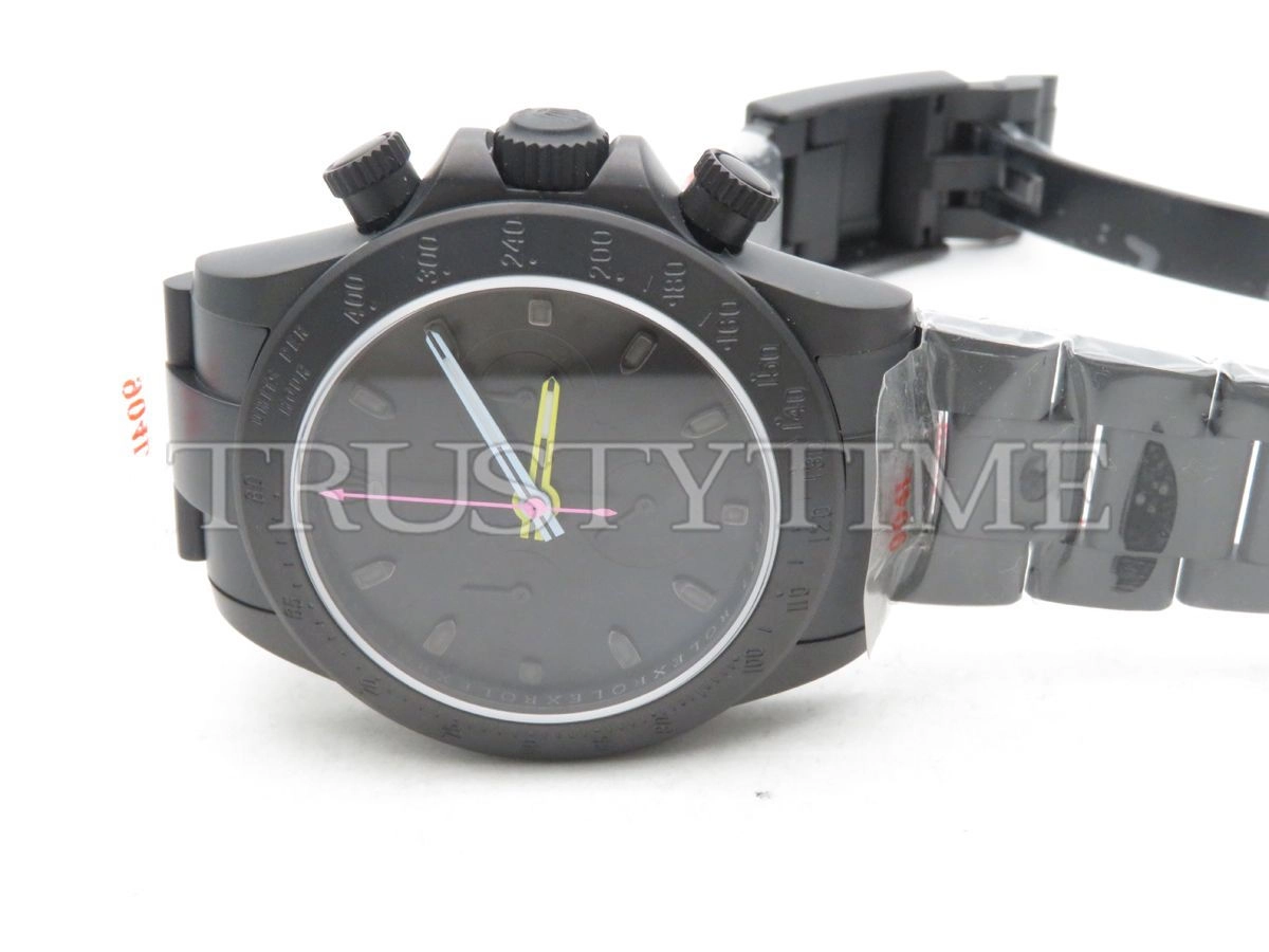 Часы Rolex из коллекции Daytona Blaken. Спортивные мужские часы Rolex Blaken Daytona премиального качества (Артикул магазина: RX-1891) оснащены надежным автоматическим механизмом с автоподзаводом (работает от амплитуды движения руки) калибра 4130, в котором реализованы следующие функции: часовая, минутная и секундная стрелки, а так же хронограф. Круглый корпус часов черного цвета, имеющий размер 40 мм и высоту 12.5 мм превосходно дополнит образ и украсит запястье своего обладателя. Для изготовления часов Rolex Blaken Daytona предлагаемых в нашем интернет-магазине, применяются нержавеющая сталь 904L высокого качества (Швейцарский стандарт), а так же сапфировое стекло высокой прочности, благодаря чему обеспечивается максимальная защита от сколов и механических повреждений. Отличительной чертой данной модели является черный циферблат, часовые индексы которого обеспечивают часовые метки. Завершает образ браслет из нержавеющей стали черного цвета с фирменной раскладывающейся застежкой Rolex. Водонепроницаемость данной модели составляет 30М (WR30) – допускается минимальное воздействие с водой.