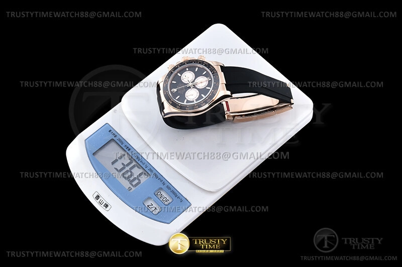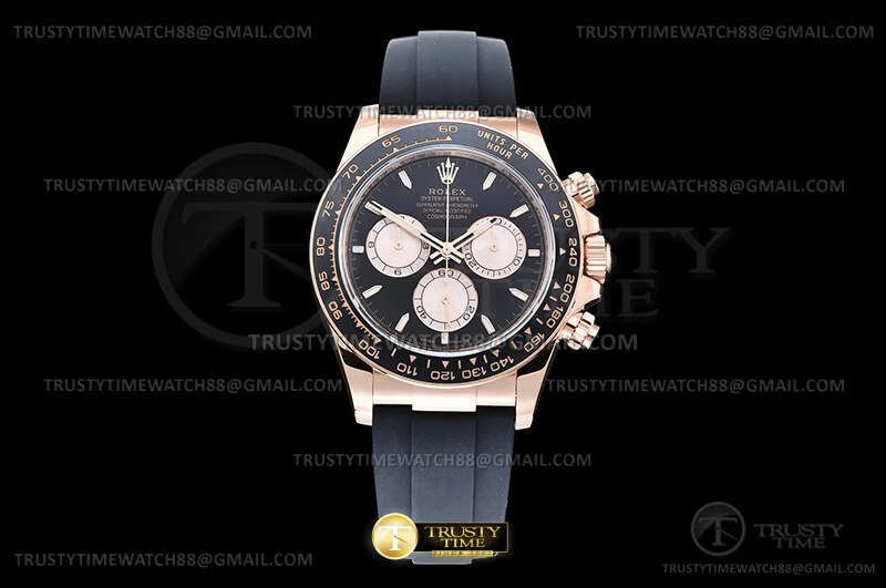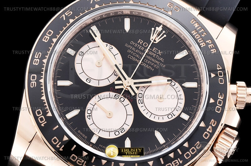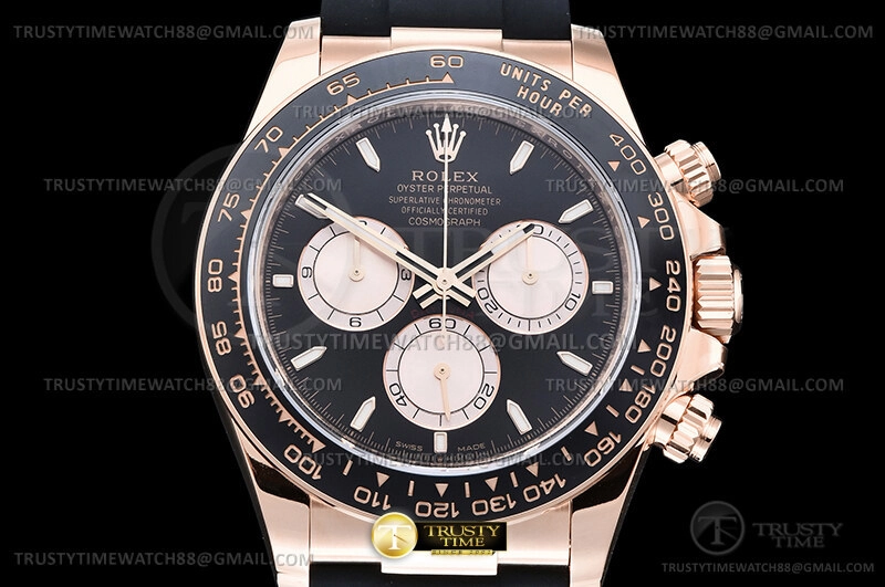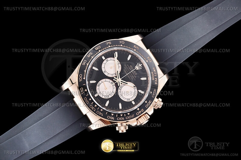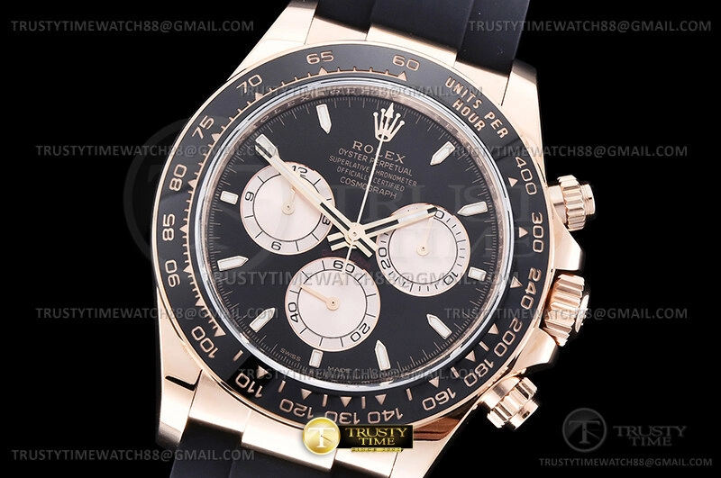 Часы Rolex из коллекции Daytona. Спортивные мужские часы Rolex Cosmograph Daytona 126515LN-0002 премиального качества (Артикул магазина: RX-3398) оснащены надежным автоматическим механизмом с автоподзаводом (работает от амплитуды движения руки) калибра 4131, в котором реализованы следующие функции: часовая, минутная и секундная стрелки, а так же хронограф. Круглый корпус часов розового цвета, имеющий размер 40 мм и высоту 12 мм превосходно дополнит образ и украсит запястье своего обладателя. Для изготовления часов Rolex Cosmograph Daytona 126515LN-0002 предлагаемых в нашем интернет-магазине, применяются нержавеющая сталь 904L высокого качества (Швейцарский стандарт), а так же сапфировое стекло высокой прочности, благодаря чему обеспечивается максимальная защита от сколов и механических повреждений. Отличительной чертой данной модели является черный циферблат, часовые индексы которого обеспечивают часовые метки. Завершает образ каучуковый ремешок черного цвета с фирменной раскладывающейся застежкой Rolex. Водонепроницаемость данной модели составляет 100М (WR100) – в таких часах можно плавать и нырять без акваланга в морской и пресной воде, а также заниматься водными видами спорта.