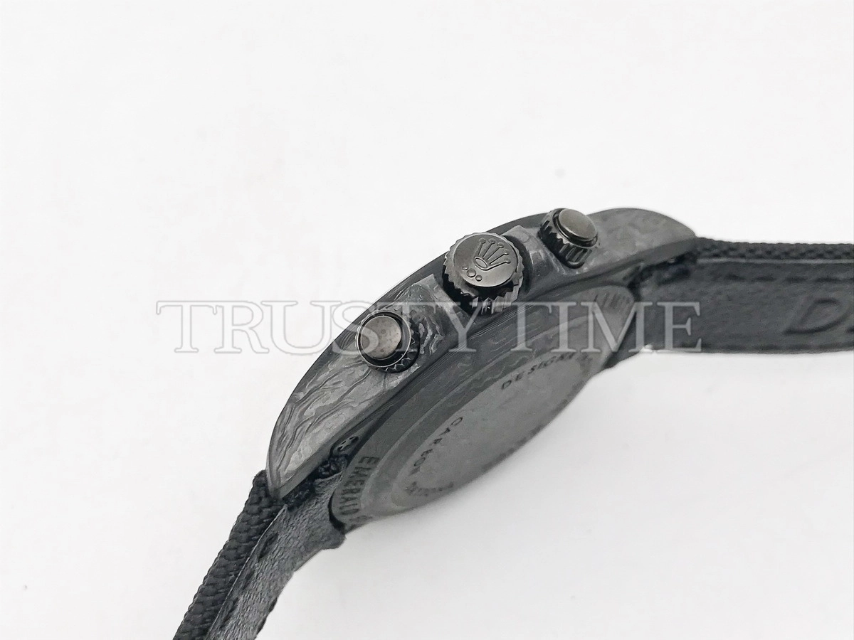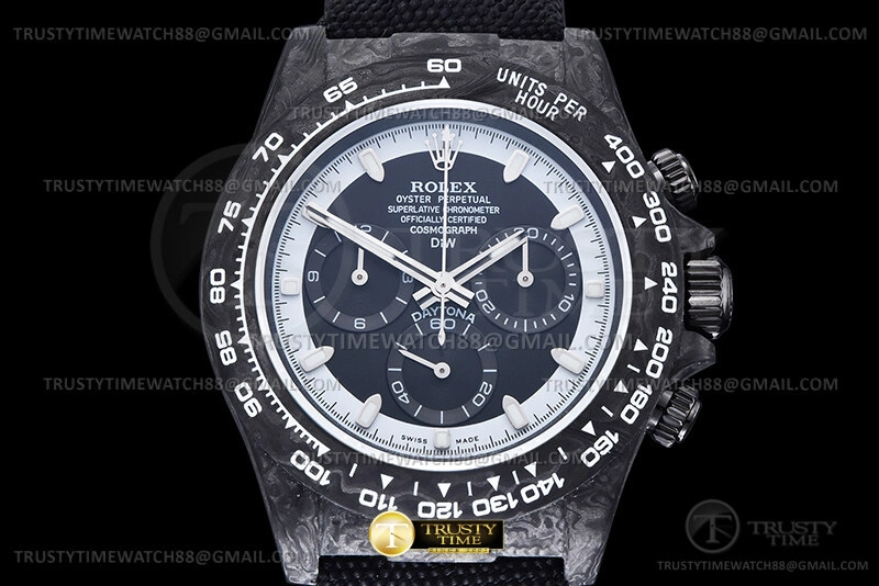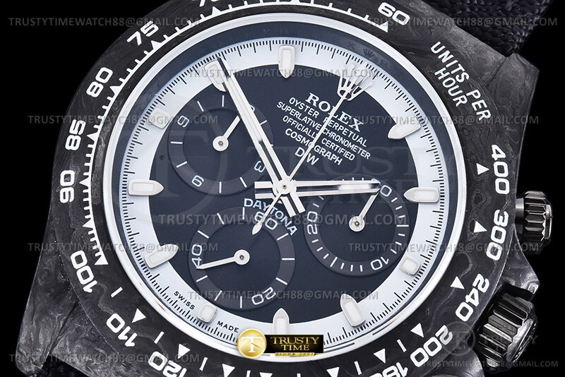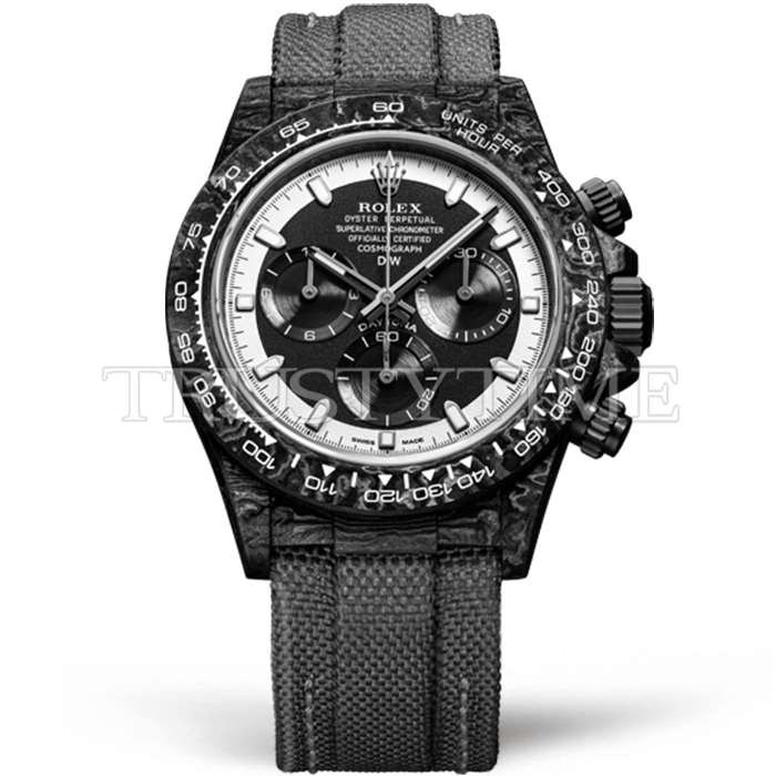 Часы Rolex из коллекции Daytona DIW. Спортивные мужские часы Rolex Cosmograph Daytona DIW Cream Invert премиального качества (Артикул магазина: RX-3537) оснащены надежным автоматическим механизмом с автоподзаводом (работает от амплитуды движения руки) калибра 4130, в котором реализованы следующие функции: часовая, минутная и секундная стрелки, а так же хронограф. Круглый корпус часов черного цвета, имеющий размер 40 мм и высоту 12.5 мм превосходно дополнит образ и украсит запястье своего обладателя. Для изготовления часов Rolex Cosmograph Daytona DIW Cream Invert предлагаемых в нашем интернет-магазине, применяются кованый карбон высокого качества (Швейцарский стандарт), а так же сапфировое стекло высокой прочности, благодаря чему обеспечивается максимальная защита от сколов и механических повреждений. Отличительной чертой данной модели является черный циферблат, часовые индексы которого обеспечивают часовые метки. Завершает образ нейлоновый ремешок черного цвета на липучке Rolex. Водонепроницаемость данной модели составляет 30М (WR30) – допускается минимальное воздействие с водой.