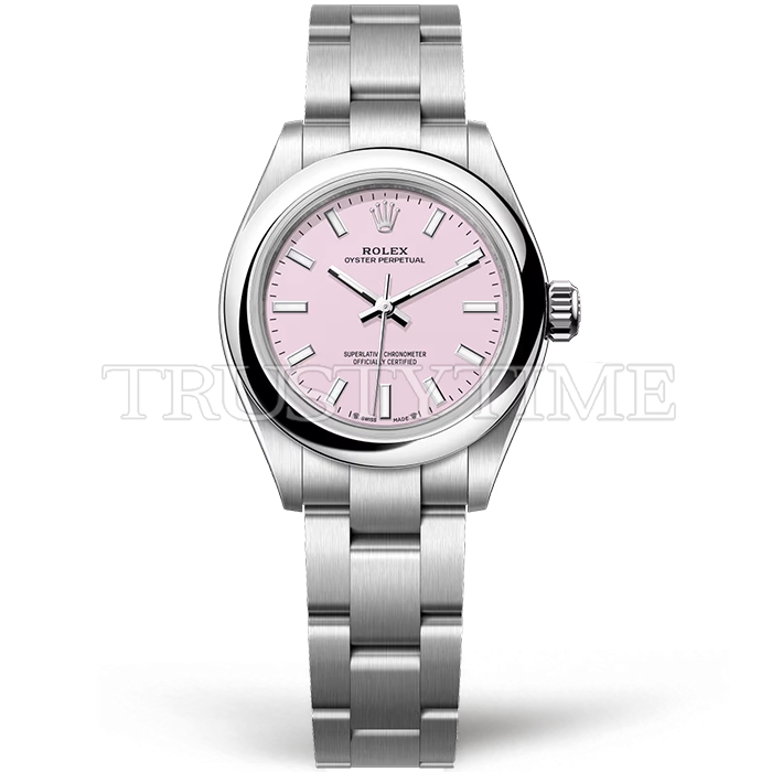 Часы Rolex из коллекции Oyster Perpetual. Классические женские часы Rolex Oyster Perpetual 28mm 276200-0009 премиального качества (Артикул магазина: RX-3592) оснащены надежным автоматическим механизмом с автоподзаводом (работает от амплитуды движения руки) калибра ETA2671, в котором реализованы следующие функции: часовая, минутная и секундная стрелки, а так же максимально простой функционал без усложнений. Круглый корпус часов стального цвета, имеющий размер 28 мм и высоту 11 мм превосходно дополнит образ и украсит запястье своего обладателя. Для изготовления часов Rolex Oyster Perpetual 28mm 276200-0009 предлагаемых в нашем интернет-магазине, применяются нержавеющая сталь 904L высокого качества (Швейцарский стандарт), а так же сапфировое стекло высокой прочности, благодаря чему обеспечивается максимальная защита от сколов и механических повреждений. Отличительной чертой данной модели является розовый циферблат, часовые индексы которого обеспечивают часовые метки. Завершает образ браслет из нержавеющей стали стального цвета с фирменной раскладывающейся застежкой Rolex. Водонепроницаемость данной модели составляет 30М (WR30) – допускается минимальное воздействие с водой.
