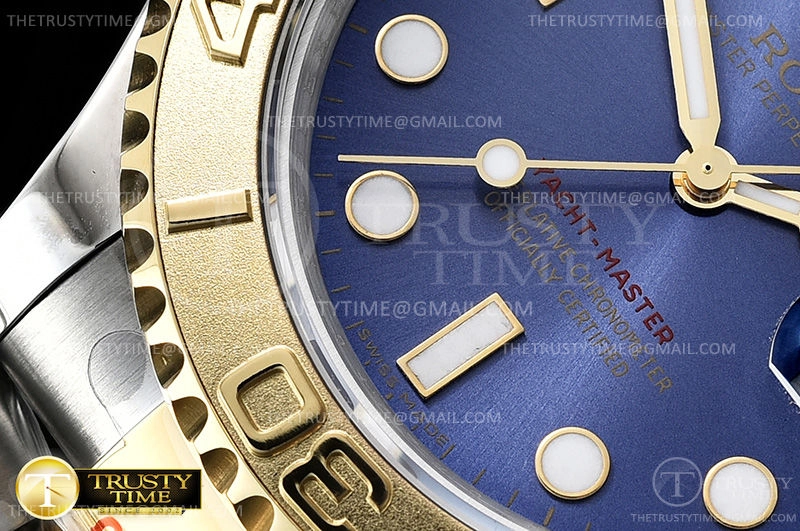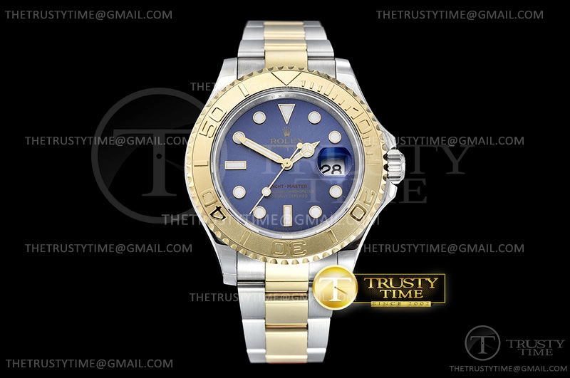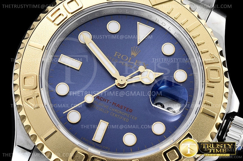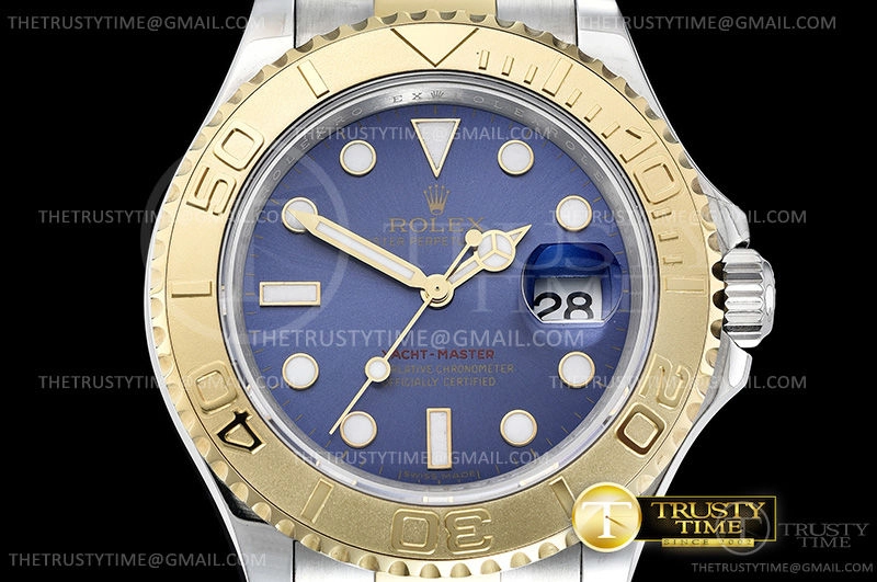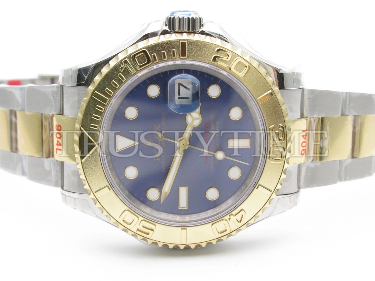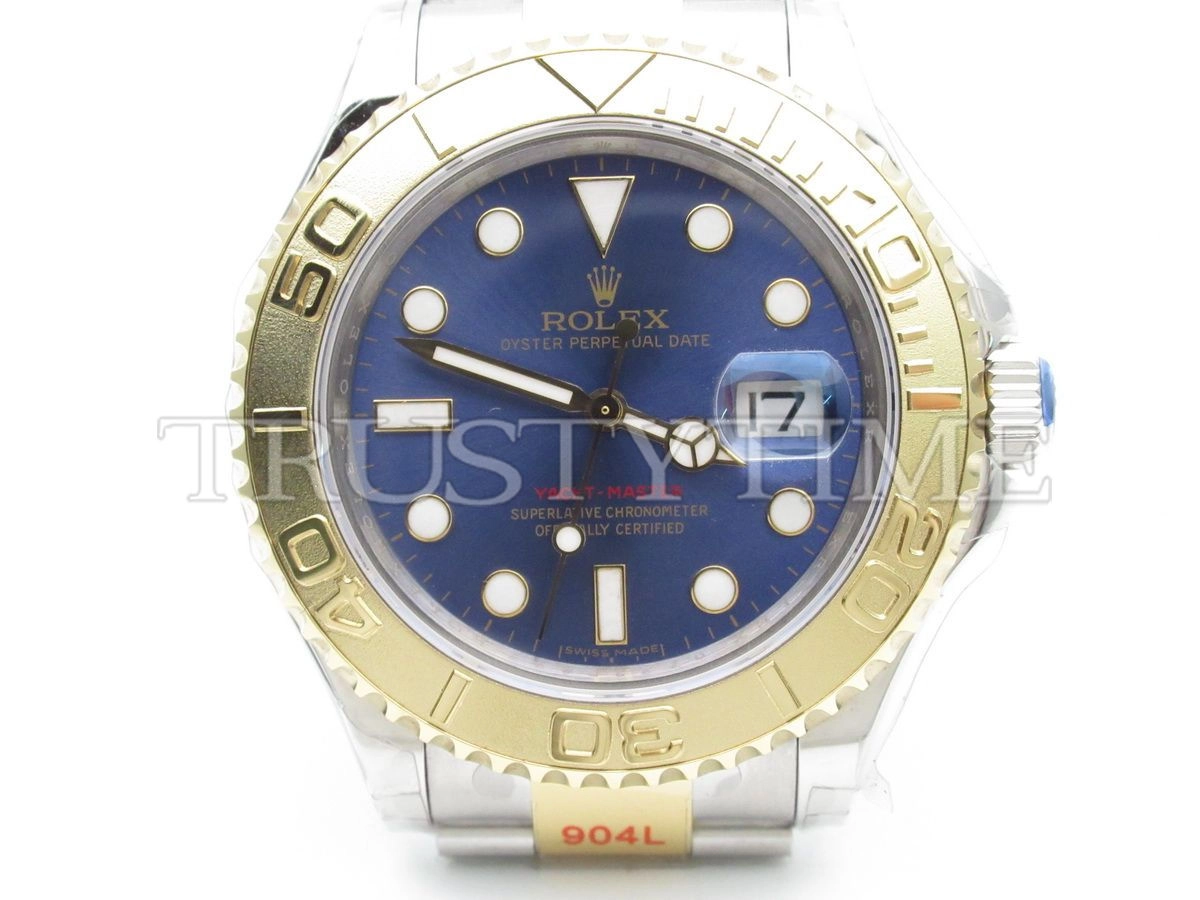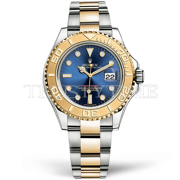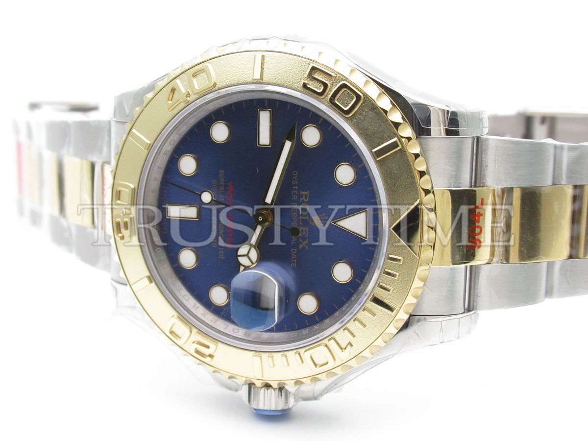 Часы Rolex из коллекции Yacht-Master. Классические мужские часы Rolex Yacht-Master 40mm 16623-0007 премиального качества (Артикул магазина: RX-1561) оснащены надежным автоматическим механизмом с автоподзаводом (работает от амплитуды движения руки) калибра 3135, в котором реализованы следующие функции: часовая, минутная и секундная стрелки, а так же дата. Круглый корпус часов комбинированного сталь с желтого золота цвета, имеющий размер 40 мм и высоту 12.5 мм превосходно дополнит образ и украсит запястье своего обладателя. Для изготовления часов Rolex Yacht-Master 40mm 16623-0007 предлагаемых в нашем интернет-магазине, применяются нержавеющая сталь 904L высокого качества (Швейцарский стандарт), а так же сапфировое стекло высокой прочности, благодаря чему обеспечивается максимальная защита от сколов и механических повреждений. Отличительной чертой данной модели является синий циферблат, часовые индексы которого обеспечивают часовые метки. Завершает образ браслет из нержавеющей стали комбинированного сталь с желтым золотом цвета с фирменной раскладывающейся застежкой Rolex. Водонепроницаемость данной модели составляет 30М (WR30) – допускается минимальное воздействие с водой.