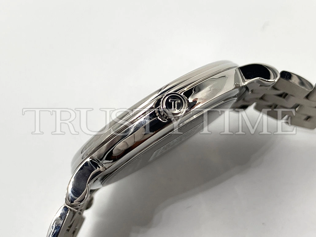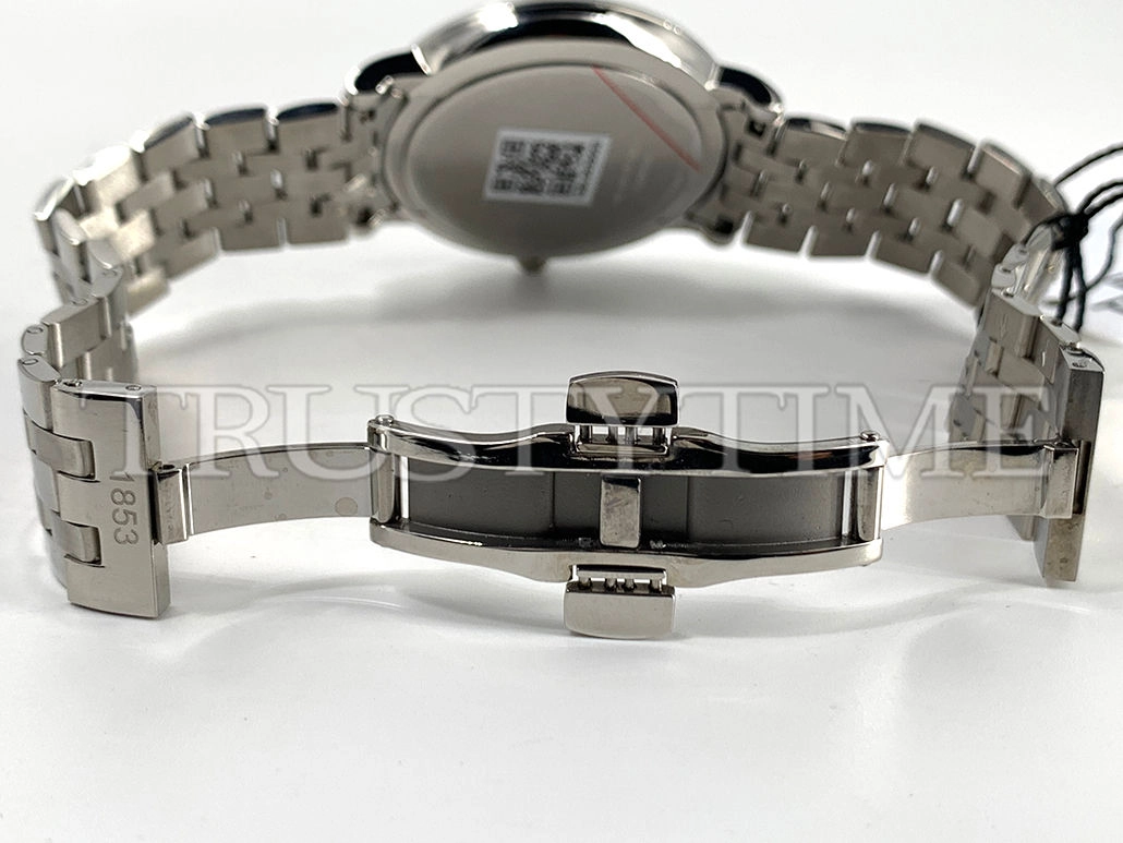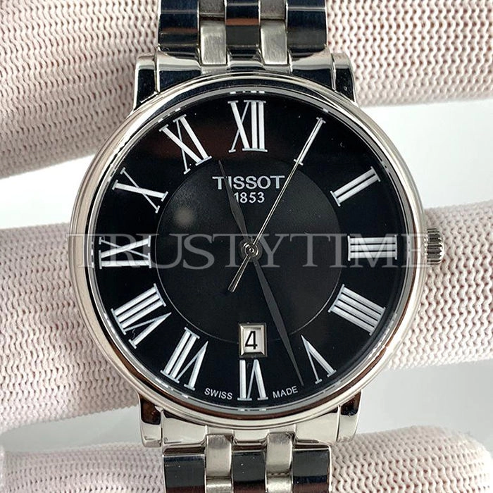 Часы Tissot из коллекции Carson Premium. Классические мужские часы Tissot Carson Premium Quartz 40 качества ААА+ (Артикул магазина: TT-0381) оснащены надежным кварцевым механизмом (работает от батареи) калибра Quartz ETA 251.471, в котором реализованы следующие функции: часовая, минутная и секундная стрелки, а так же дата. Круглый корпус часов стального цвета, имеющий размер 40 мм и высоту 8 мм превосходно дополнит образ и украсит запястье своего обладателя. Для изготовления часов Tissot Carson Premium Quartz 40 предлагаемых в нашем интернет-магазине, применяются нержавеющая сталь 316L высокого качества (Швейцарский стандарт), а так же сапфировое стекло высокой прочности, благодаря чему обеспечивается максимальная защита от сколов и механических повреждений. Отличительной чертой данной модели является черный циферблат, часовые индексы которого обеспечивают римские цифры. Завершает образ браслет из нержавеющей стали стального цвета с фирменной раскладывающейся застежкой Tissot. Водонепроницаемость данной модели составляет 30М (WR30) – допускается минимальное воздействие с водой.