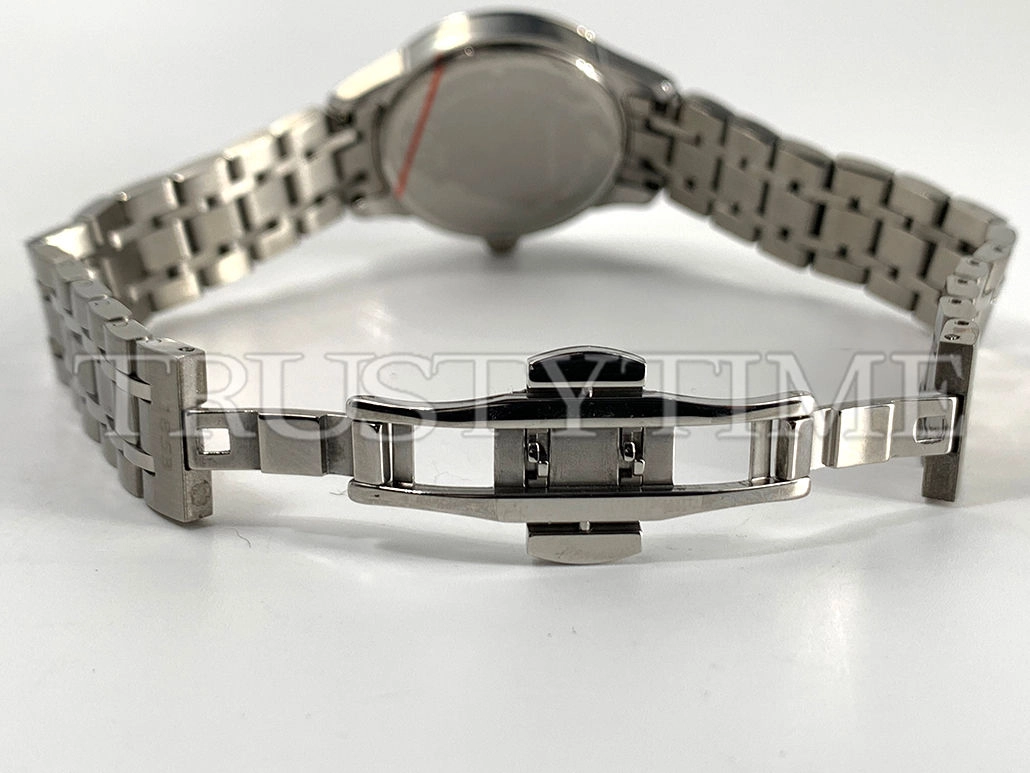 Часы Tissot из коллекции Chemin Des Tourelles. Классические женские часы Tissot Chemin Des Tourelles Powermatic 80 32 качества ААА+ (Артикул магазина: TT-0385) оснащены надежным кварцевым механизмом (работает от батареи) калибра Quartz ETA 251.471, в котором реализованы следующие функции: часовая, минутная и секундная стрелки, а так же дата. Круглый корпус часов стального цвета, имеющий размер 32 мм и высоту 7 мм превосходно дополнит образ и украсит запястье своего обладателя. Для изготовления часов Tissot Chemin Des Tourelles Powermatic 80 32 предлагаемых в нашем интернет-магазине, применяются нержавеющая сталь 316L высокого качества (Швейцарский стандарт), а так же сапфировое стекло высокой прочности, благодаря чему обеспечивается максимальная защита от сколов и механических повреждений. Отличительной чертой данной модели является серебристый циферблат, часовые индексы которого обеспечивают римские цифры. Завершает образ браслет из нержавеющей стали стального цвета с фирменной раскладывающейся застежкой Tissot. Водонепроницаемость данной модели составляет 30М (WR30) – допускается минимальное воздействие с водой.
