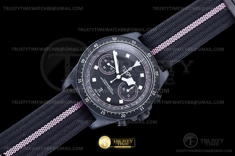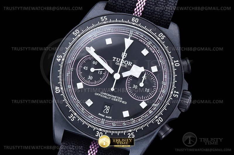 Часы Tudor из коллекции Pelagos. Спортивные мужские часы Tudor Pelagos FXD Chrono Pink Giro d'Italia 43mm M25827KNRS-0002 премиального качества (Артикул магазина: TD-0855) оснащены надежным автоматическим механизмом с автоподзаводом (работает от амплитуды движения руки) калибра Valjoux-7750, в котором реализованы следующие функции: часовая, минутная и секундная стрелки, а так же хронограф, дата. Круглый корпус часов черного цвета, имеющий размер 43 мм и высоту 15.5 мм превосходно дополнит образ и украсит запястье своего обладателя. Для изготовления часов Tudor Pelagos FXD Chrono Pink Giro d'Italia 43mm M25827KNRS-0002 предлагаемых в нашем интернет-магазине, применяются нержавеющая сталь 316F высокого качества (Швейцарский стандарт), а так же сапфировое стекло высокой прочности, благодаря чему обеспечивается максимальная защита от сколов и механических повреждений. Отличительной чертой данной модели является черный циферблат, часовые индексы которого обеспечивают часовые метки. Завершает образ нейлоновый ремешок черного цвета с фирменной классической застежкой Tudor. Водонепроницаемость данной модели составляет 30М (WR30) – допускается минимальное воздействие с водой.