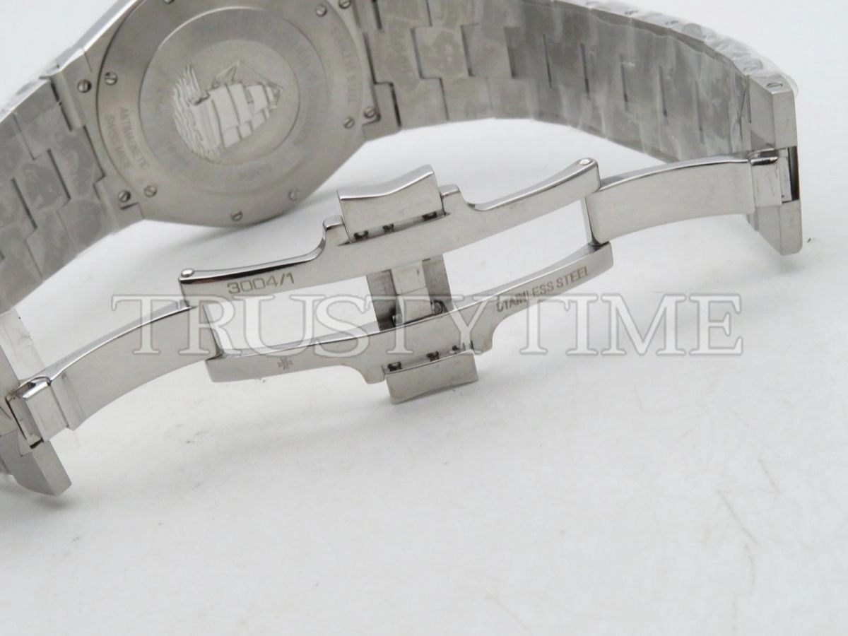 Часы Vacheron Constantin из коллекции Overseas. Классические мужские часы Vacheron Constantin Overseas Automatic 42mm 47040/B01A-9093 премиального качества (Артикул магазина: VC-0260) оснащены надежным автоматическим механизмом с автоподзаводом (работает от амплитуды движения руки) калибра V.C.1226, в котором реализованы следующие функции: часовая, минутная и секундная стрелки, а так же дата. Круглый корпус часов стального цвета, имеющий размер 42 мм и высоту 10 мм превосходно дополнит образ и украсит запястье своего обладателя. Для изготовления часов Vacheron Constantin Overseas Automatic 42mm 47040/B01A-9093 предлагаемых в нашем интернет-магазине, применяются нержавеющая сталь 316F высокого качества (Швейцарский стандарт), а так же сапфировое стекло высокой прочности, благодаря чему обеспечивается максимальная защита от сколов и механических повреждений. Отличительной чертой данной модели является серебристый циферблат, часовые индексы которого обеспечивают арабские цифры, часовые индексы которого обеспечивают часовые метки. Завершает образ браслет из нержавеющей стали стального цвета с фирменной раскладывающейся застежкой Vacheron Constantin. Водонепроницаемость данной модели составляет 30М (WR30) – допускается минимальное воздействие с водой.