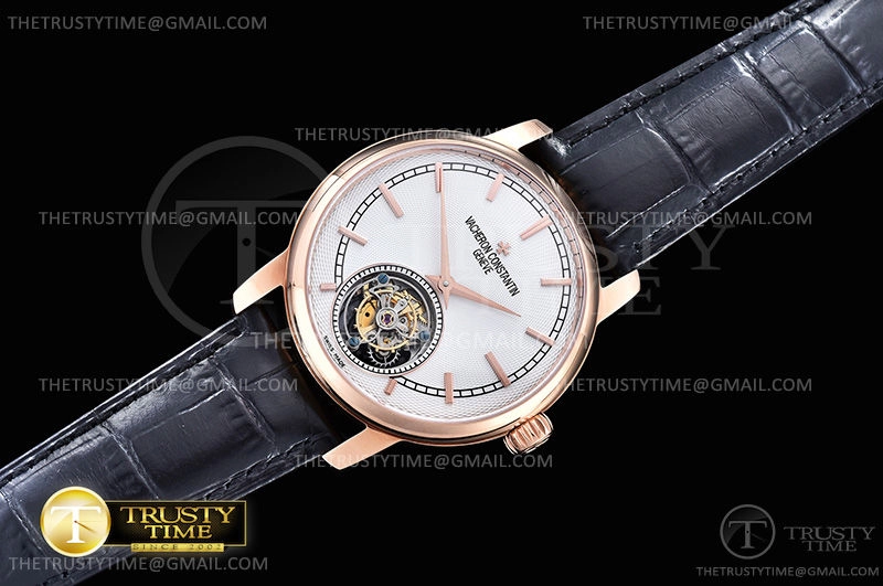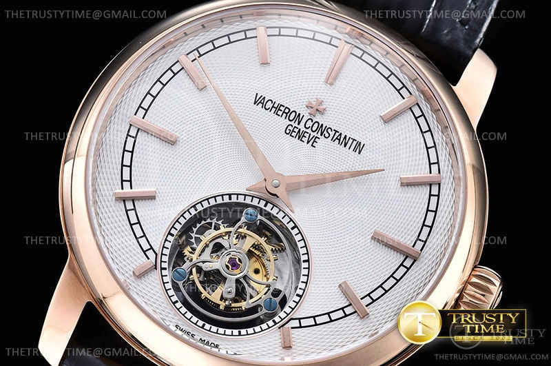 Часы Vacheron Constantin из коллекции Traditionnelle Tourbillon. Классические мужские часы Vacheron Constantin Traditionnelle Tourbillon 44mm 6500T/000R-B324 премиального качества (Артикул магазина: VC-0227) оснащены надежным автоматическим механизмом с ручным заводом калибра Seagull Handwind Tourbillon, в котором реализованы следующие функции: часова и минутка стрелки, а так же турбийон. Круглый корпус часов розового цвета, имеющий размер 44 мм и высоту 13.5 мм превосходно дополнит образ и украсит запястье своего обладателя. Для изготовления часов Vacheron Constantin Traditionnelle Tourbillon 44mm 6500T/000R-B324 предлагаемых в нашем интернет-магазине, применяются нержавеющая сталь 316L высокого качества (Швейцарский стандарт), а так же сапфировое стекло высокой прочности, благодаря чему обеспечивается максимальная защита от сколов и механических повреждений. Отличительной чертой данной модели является серебристый циферблат, часовые индексы которого обеспечивают часовые метки. Завершает образ кожаный ремешок коричневого цвета с фирменной раскладывающейся застежкой Vacheron Constantin. Водонепроницаемость данной модели составляет 30М (WR30) – допускается минимальное воздействие с водой.