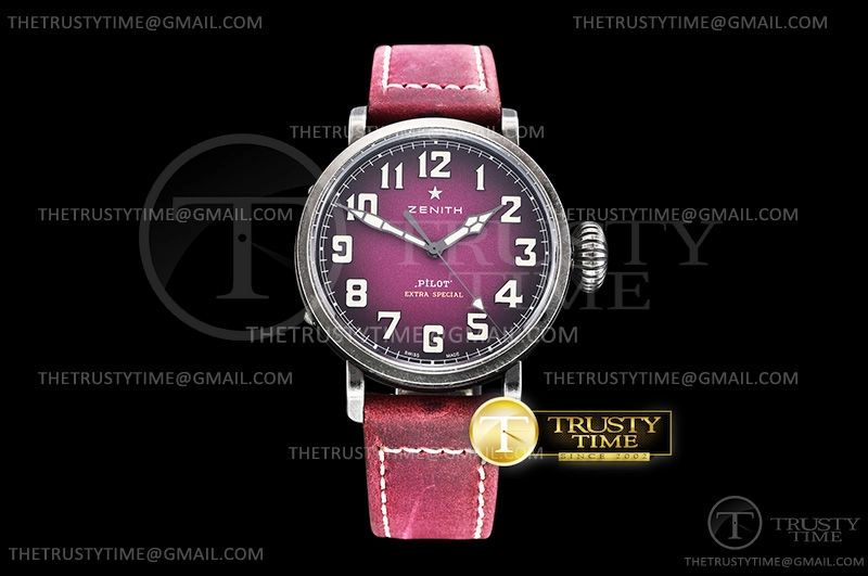 Часы Zenith из коллекции Pilot. Классические мужские часы Zenith Pilot Montre d'Aeronef Type 20 Extra Special 40mm 11.1941.679/94.C814 премиального качества (Артикул магазина: ZN-0301) оснащены надежным автоматическим механизмом с автоподзаводом (работает от амплитуды движения руки) калибра MY9015, в котором реализованы следующие функции: часовая, минутная и секундная стрелки, а так же максимально простой функционал без усложнений. Круглый корпус часов серого цвета, имеющий размер 40 мм и высоту 11.5 мм превосходно дополнит образ и украсит запястье своего обладателя. Для изготовления часов Zenith Pilot Montre d'Aeronef Type 20 Extra Special 40mm 11.1941.679/94.C814 предлагаемых в нашем интернет-магазине, применяются нержавеющая сталь Состаренная 316L высокого качества (Швейцарский стандарт), а так же сапфировое стекло высокой прочности, благодаря чему обеспечивается максимальная защита от сколов и механических повреждений. Отличительной чертой данной модели является красный циферблат, часовые индексы которого обеспечивают арабские цифры. Завершает образ кожаный ремешок красного цвета с фирменной классической застежкой Zenith. Водонепроницаемость данной модели составляет 30М (WR30) – допускается минимальное воздействие с водой.